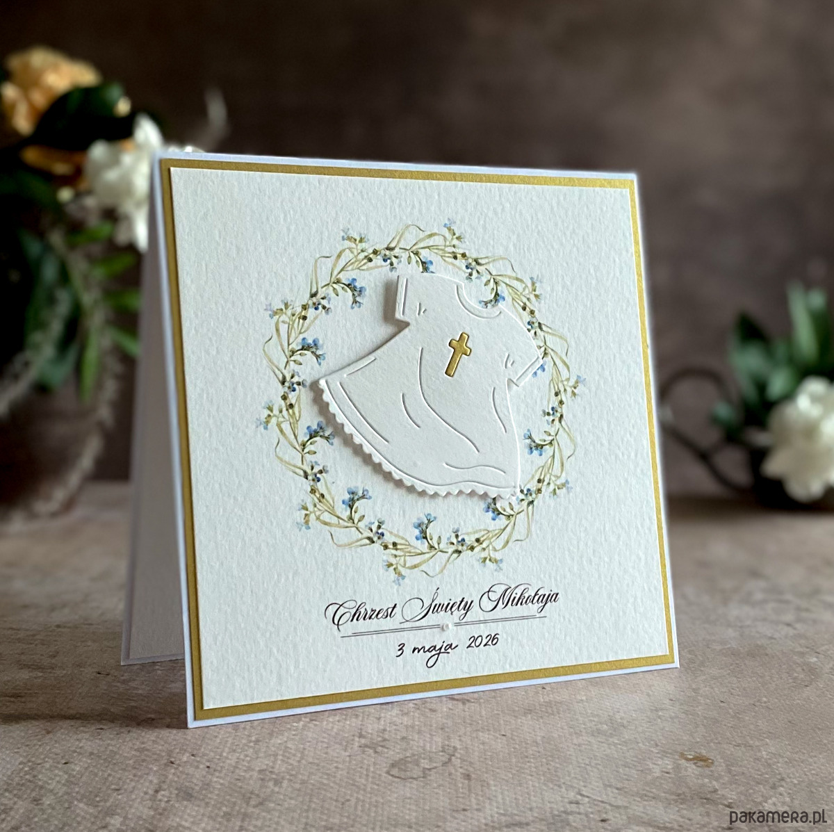 Elegancka, ręcznie robiona, personalizowana kartka z okazji chrztu.
