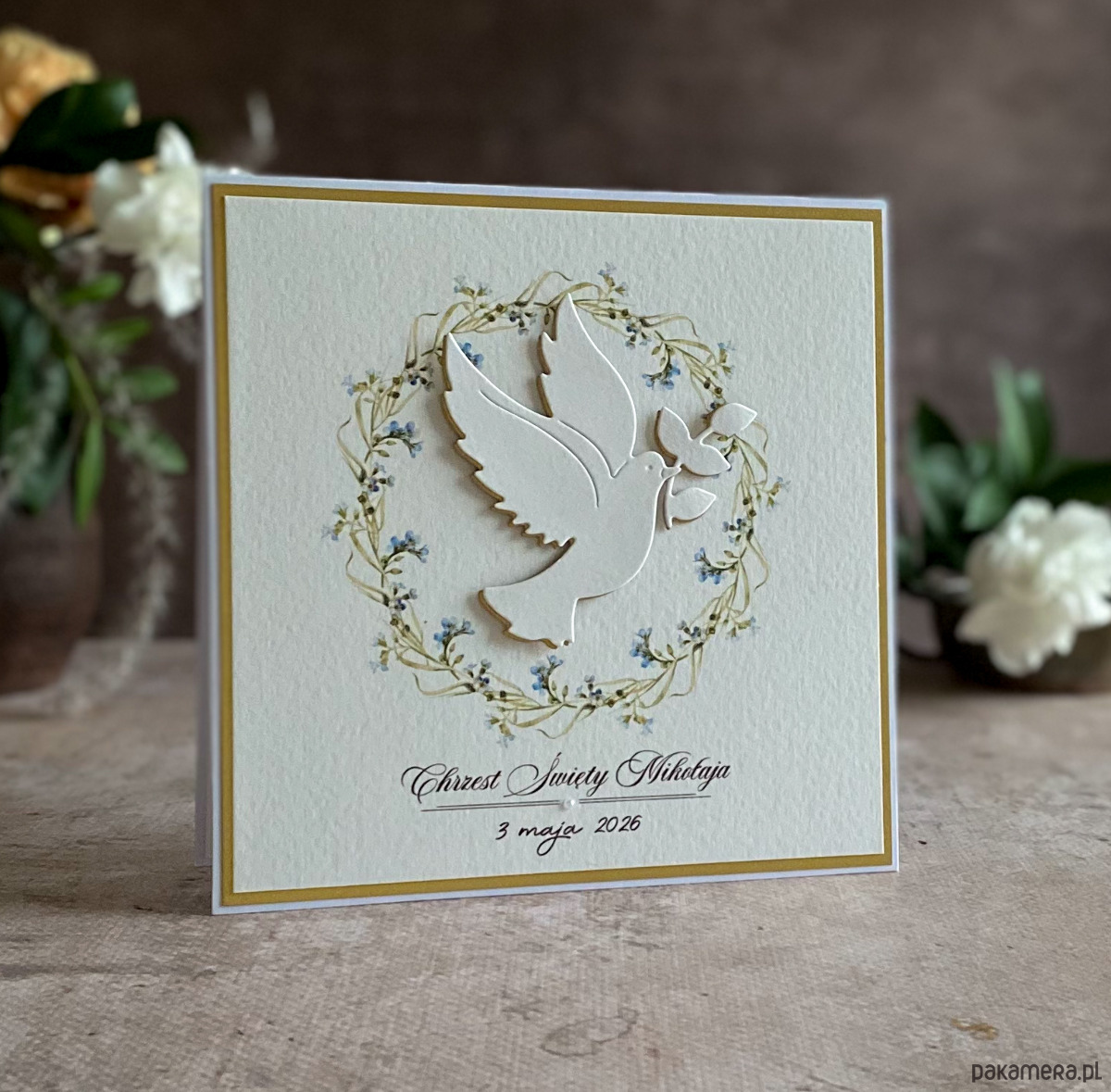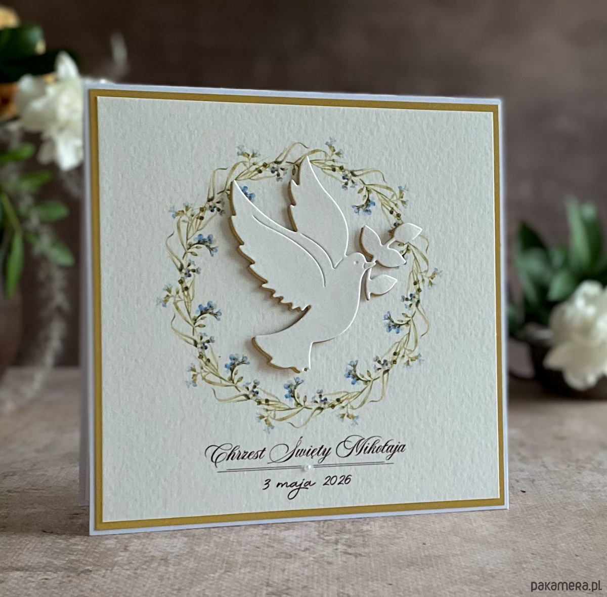 Elegancka, ręcznie robiona, personalizowana kartka z okazji chrztu świętego.