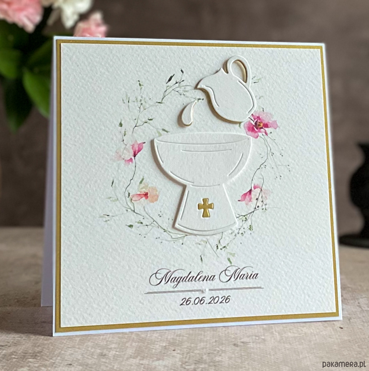 Elegancka, ręcznie robiona, kartka z okazji chrztu dla dziewczynki.