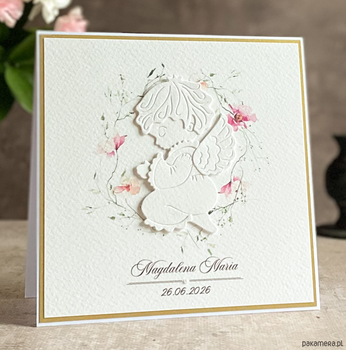 Elegancka, ręcznie robiona, kartka z okazji chrztu dla dziewczynki.