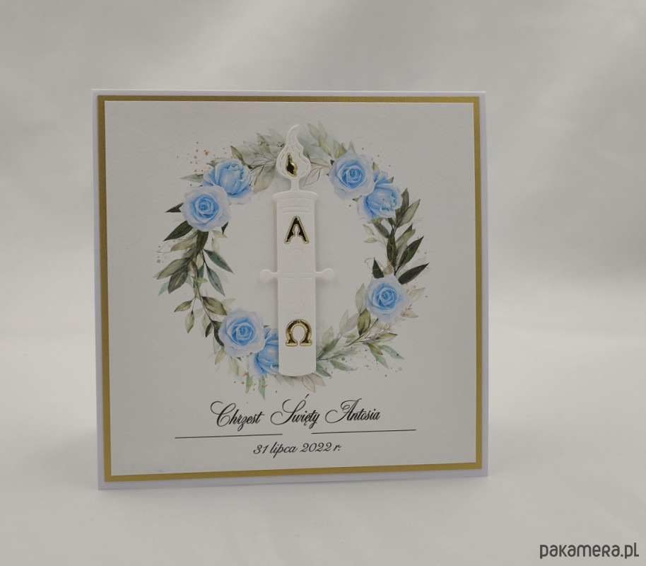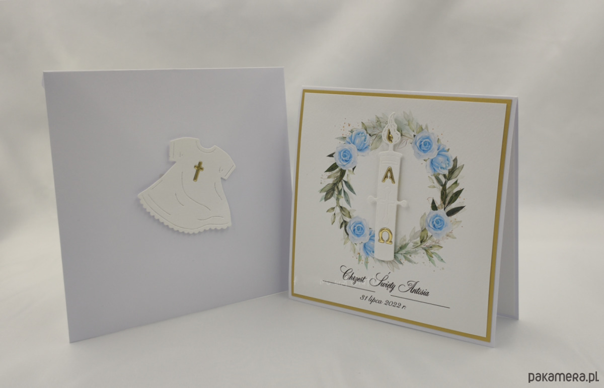 Elegancka, ręcznie wykonana, personalizowana kartka z okazji chrztu w ozdobnej kopercie.
