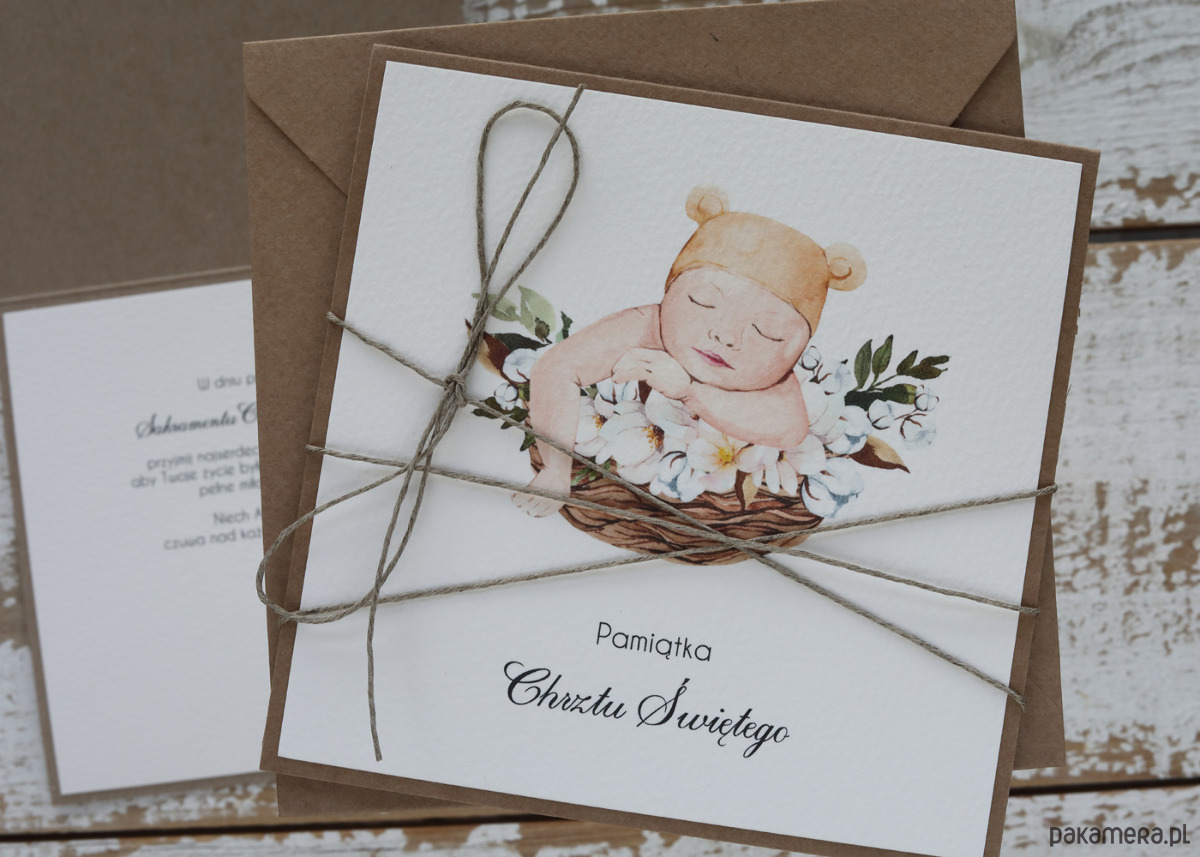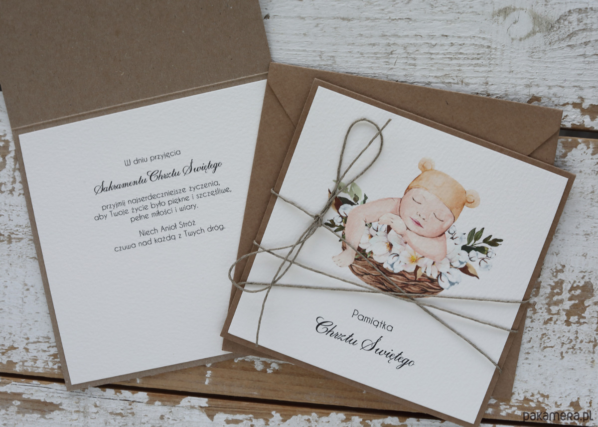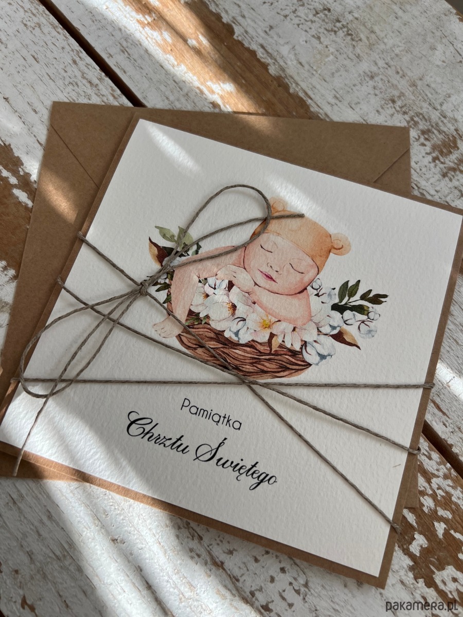 Przedmiotem oferty jest rustykalna kartka na chrzest z kopertą.