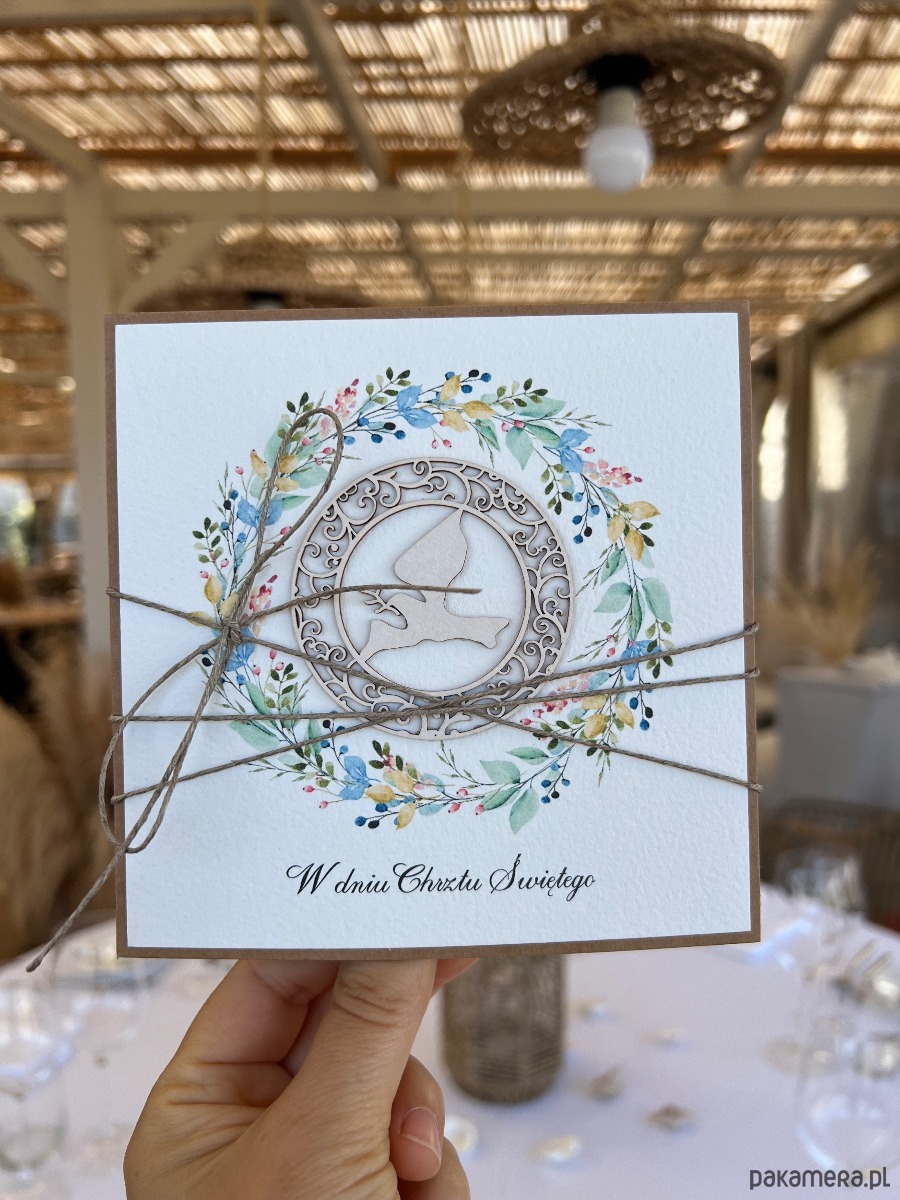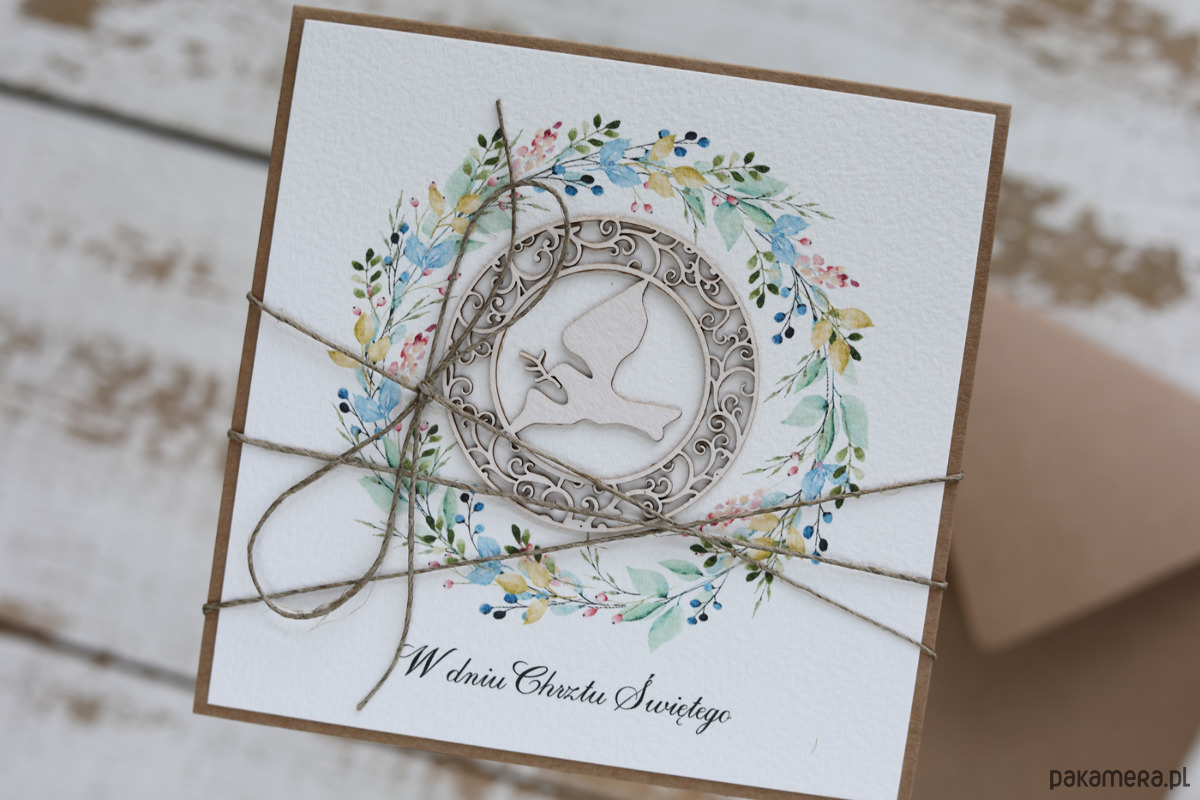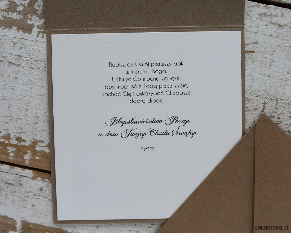 Przedmiotem oferty jest rustykalna kartka na chrzest z kopertą.