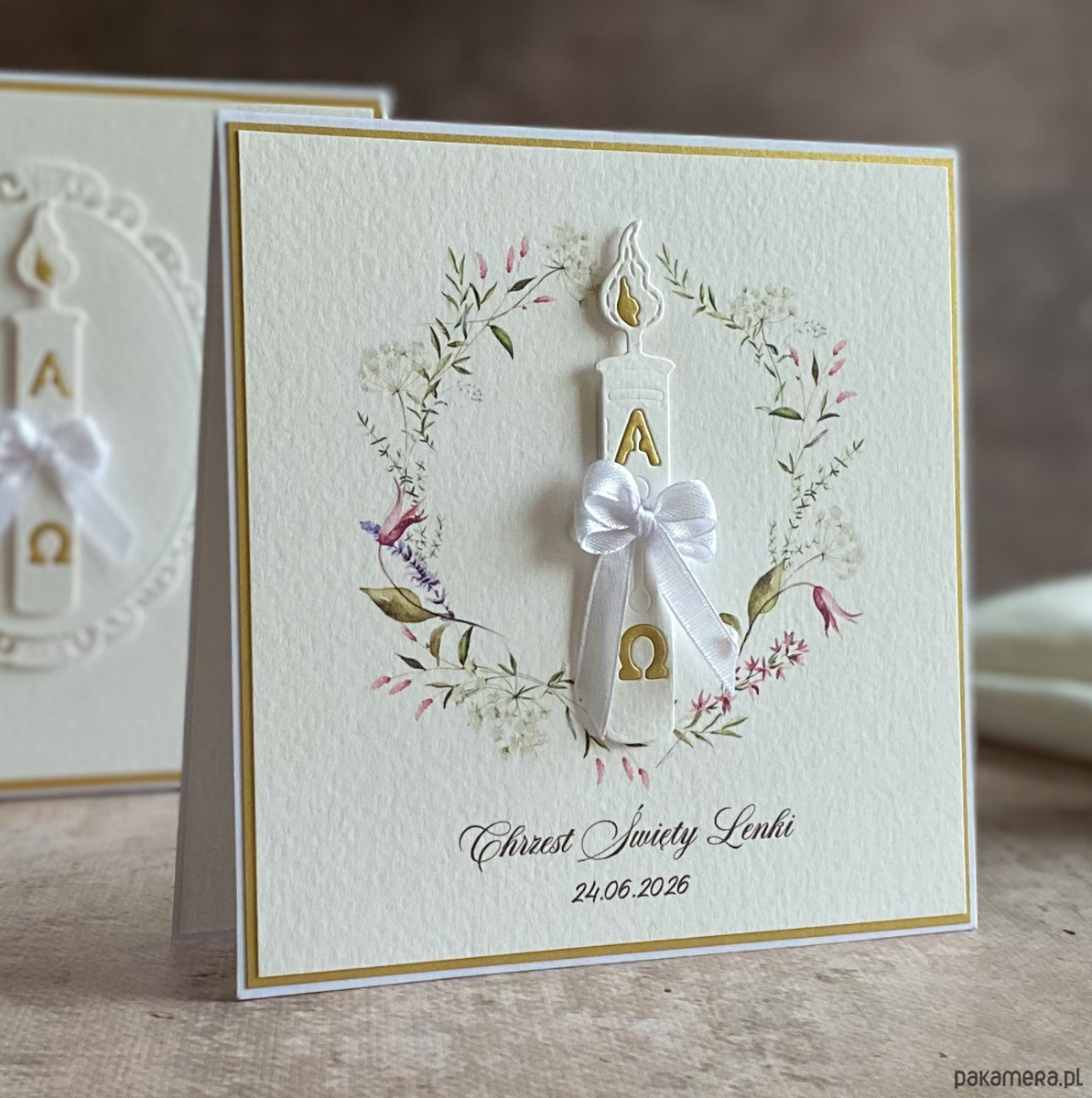 Elegancka, ręcznie robiona, personalizowana pamiątka chrztu, kartka w pudełku z ozdobną kopertą.