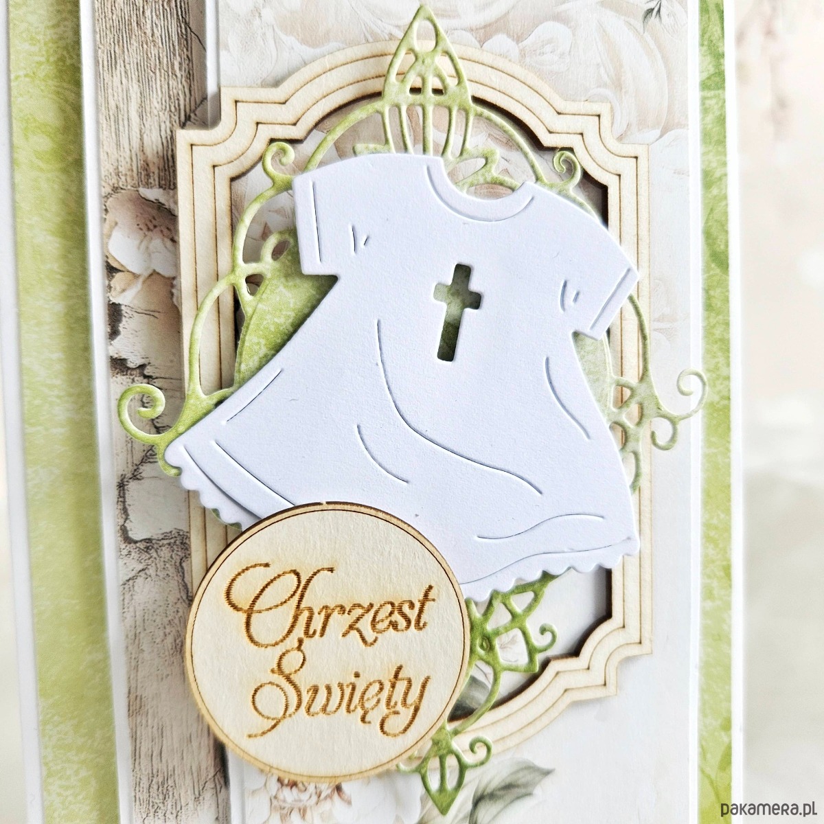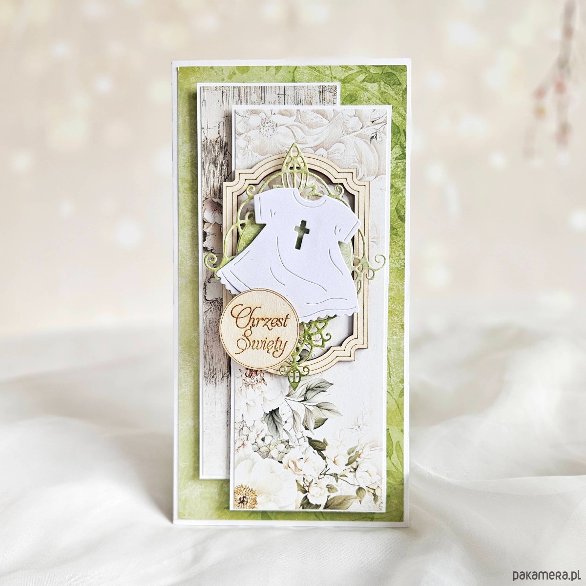 Szczegóły: Kartka w jasnych kolorach. Na froncie sztaka i dodatki sklejki.