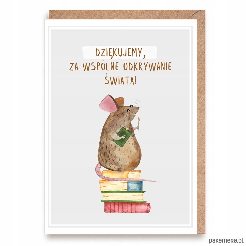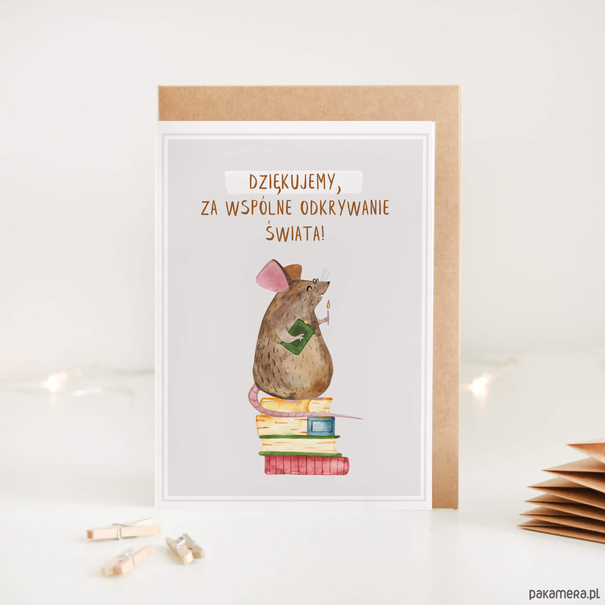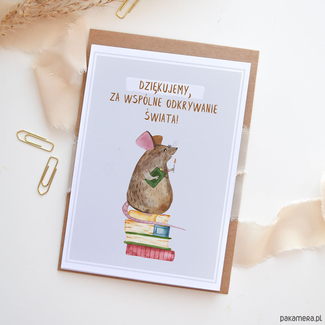 Kartka na Dzień Nauczyciela, z motywem myszki - Dziękujemy za wspólne odkrywa