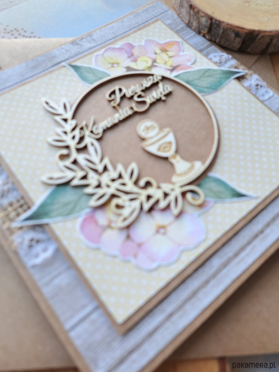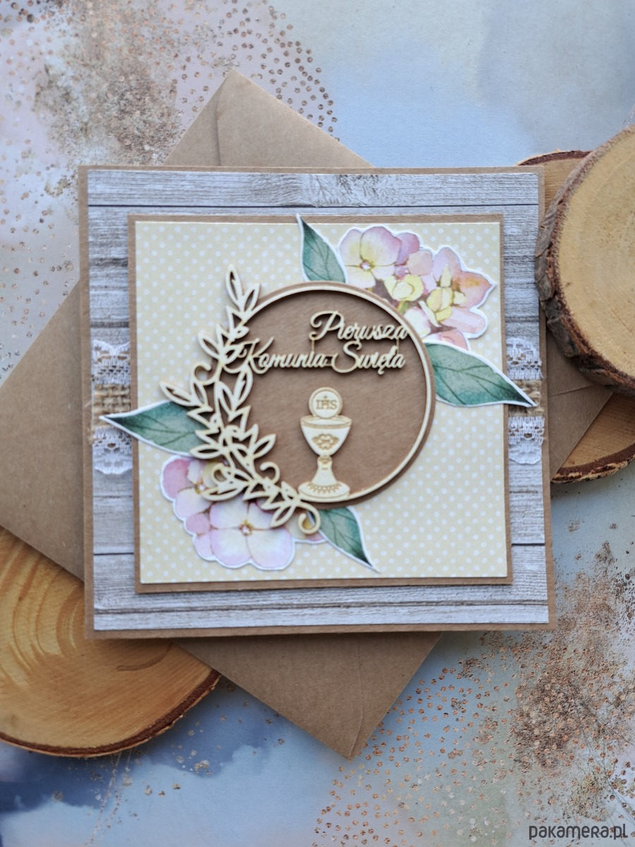 Kartka z okazji Pierwszej Komunii Świętej dla dziewczynki.