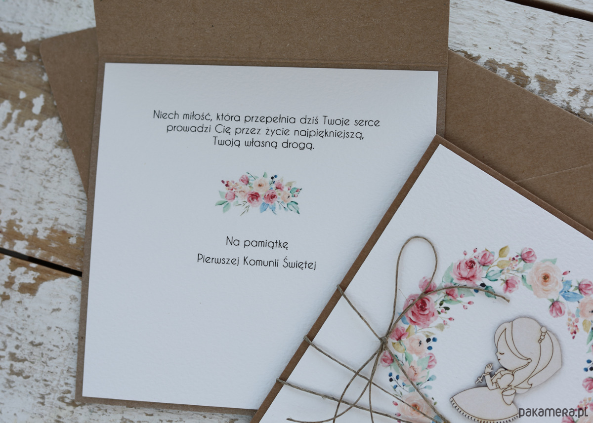 Stylowa, elegancka, wyjątkowa i oryginalna kartka komunijna wykonana z najwyższej jakości materiałów.