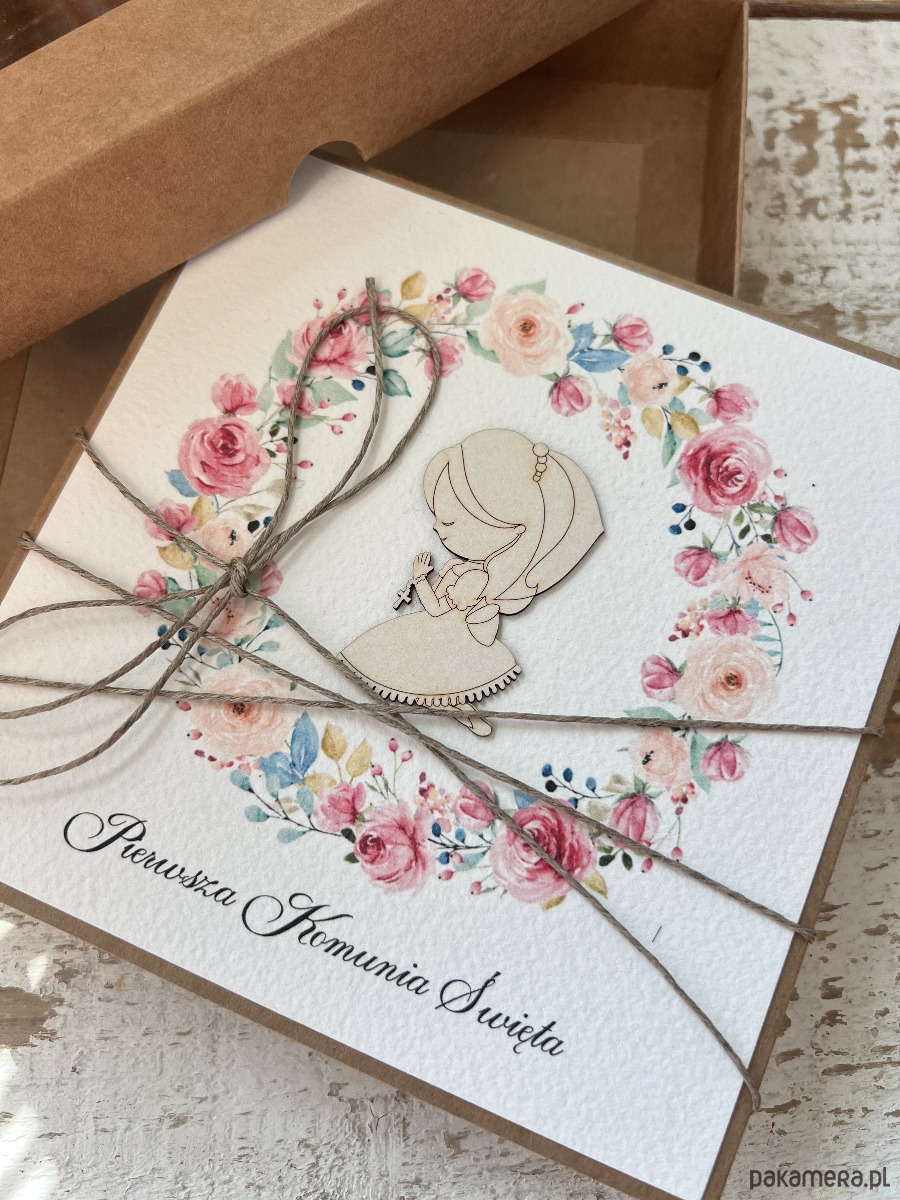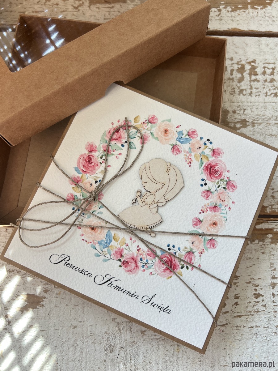 Kartka na komunię ręcznie robiona - Pamiątka Komunii - Pierwsza Komunia Święta piękne życzenia w pudełku