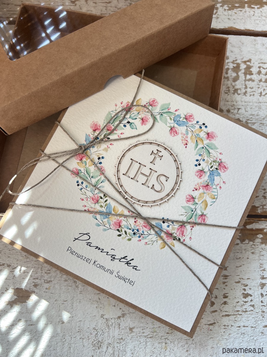 Kartka na komunię ręcznie robiona - Pamiątka Komunii - Pierwsza Komunia Święta piękne życzenia w pudełku