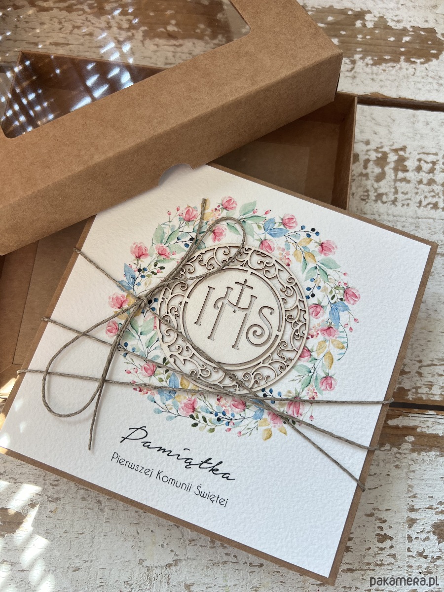 Kartka na komunię ręcznie robiona - Pamiątka Komunii - Pierwsza Komunia Święta piękne życzenia w pudełku