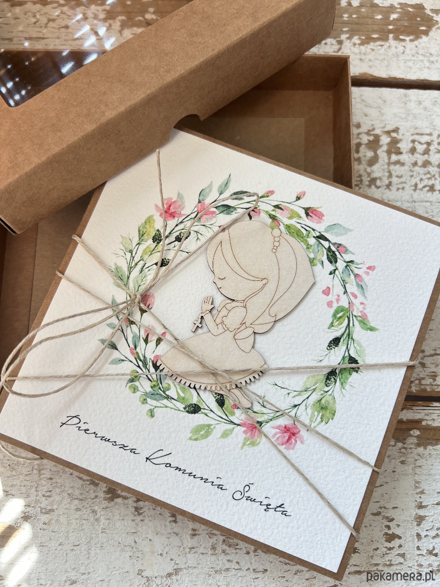 Kartka na komunię ręcznie robiona - Pamiątka Komunii - Pierwsza Komunia Święta piękne życzenia w pudełku