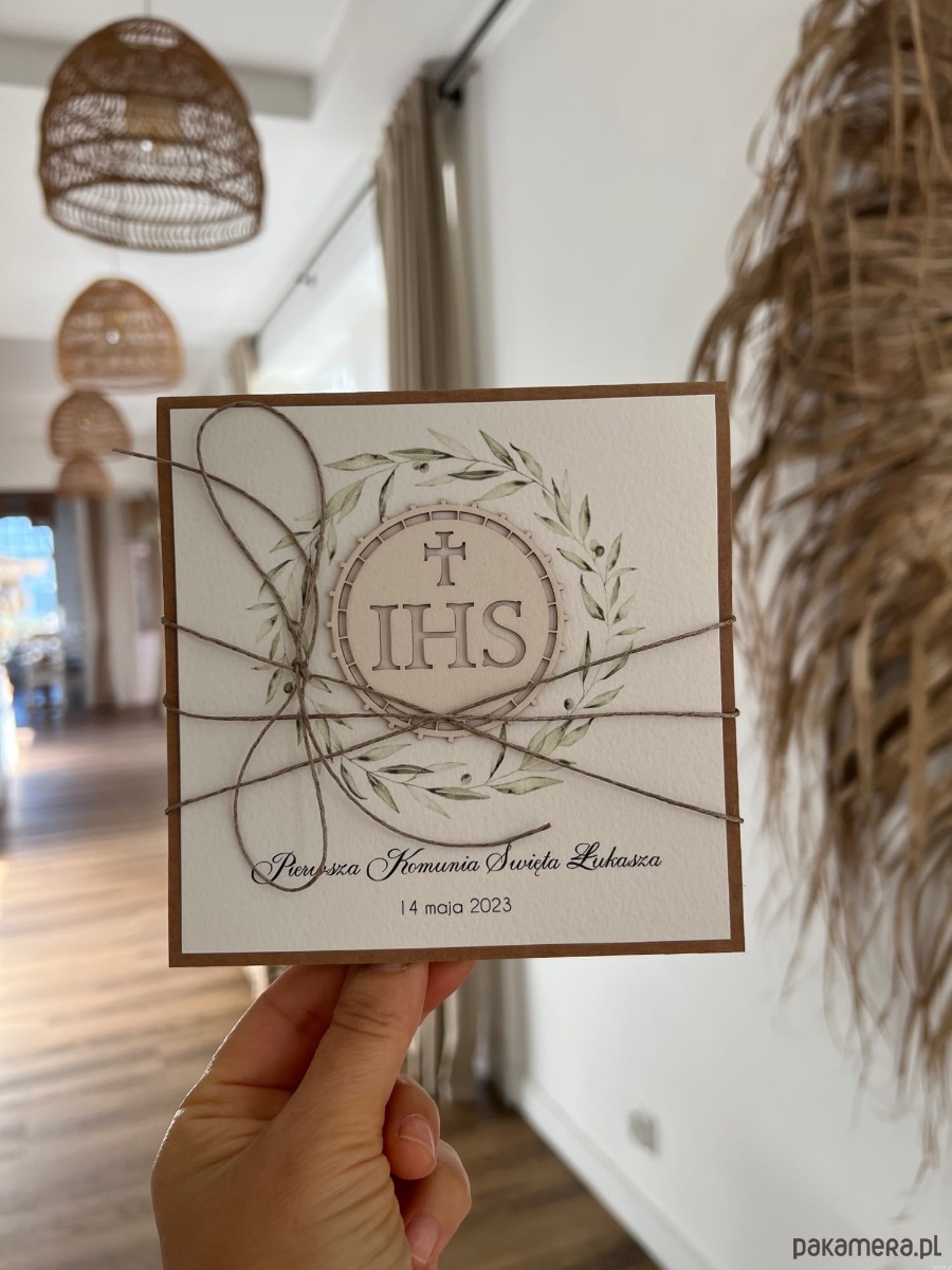 Przedmiotem oferty jest rustykalna kartka na komunię z kopertą.