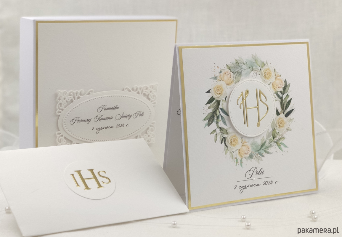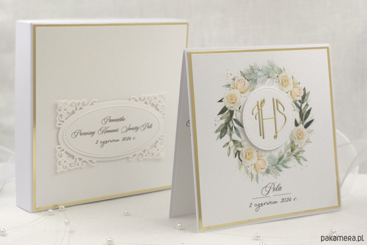 Pamiątka z naszej autorskiej kolekcji personalizowanych kartek, pamiątek oraz zaproszeń linii Gold.