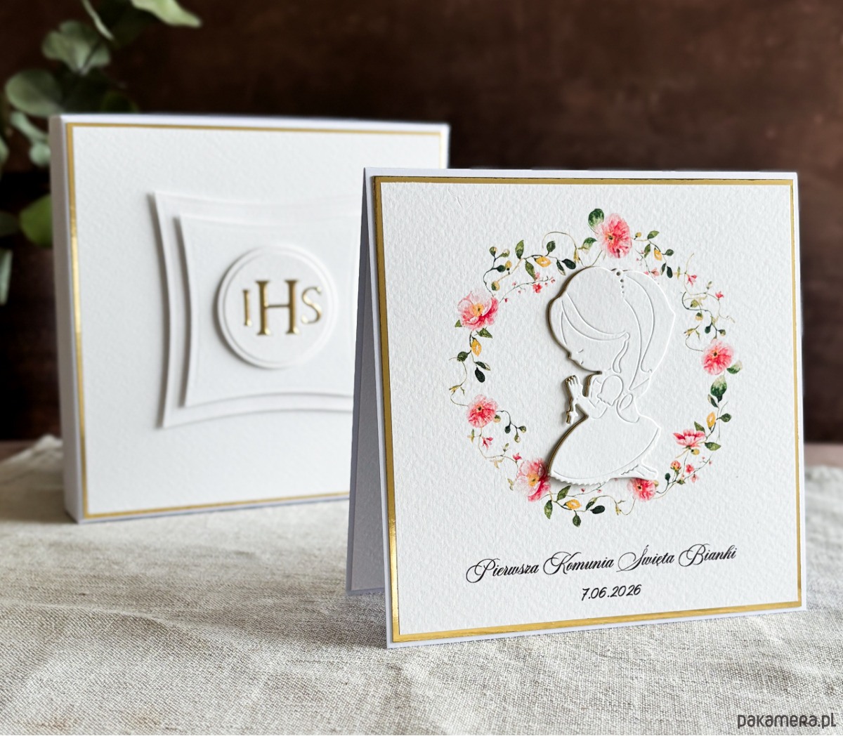 LINA GOLD to seria oryginalnych i eleganckich pamiątek oraz zaproszeń w której delikatny, włoski papier w odcieniu bieli jest połączony ze złotym papierem lustrzanym.
