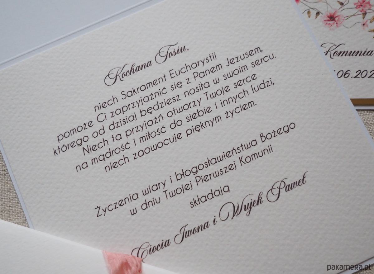 - Typ kartki: życzeniowa, pamiątkowa, z kopertą