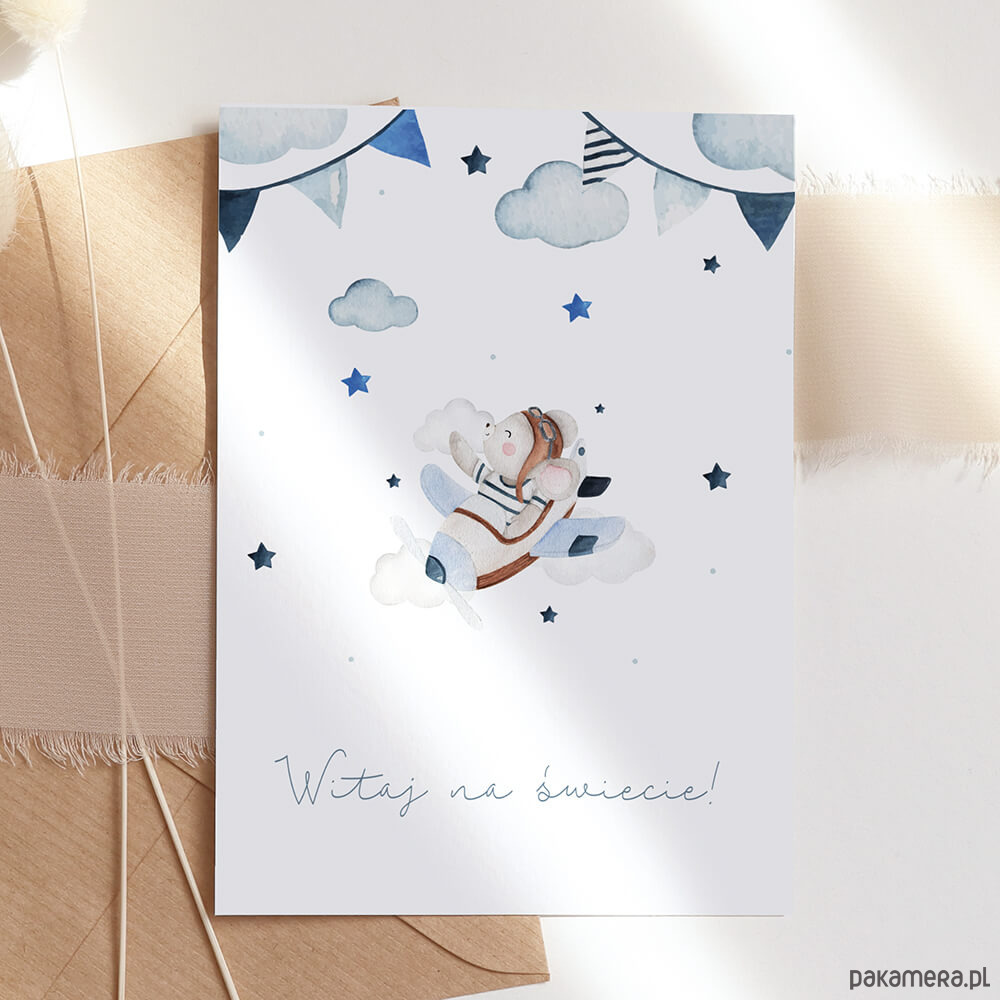 Kartka na narodziny dziecka dla chłopca - "Witaj na świecie"