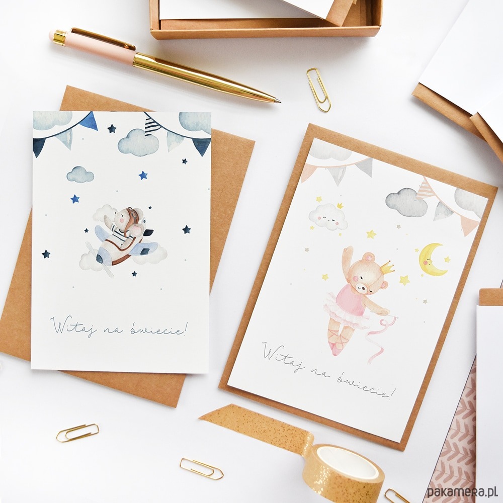 Delikatna kartka na powitanie nowego członka rodziny. Idealna do przekazania gratulacji i kilku ciepłych słów świeżo upieczonym rodzicom.
