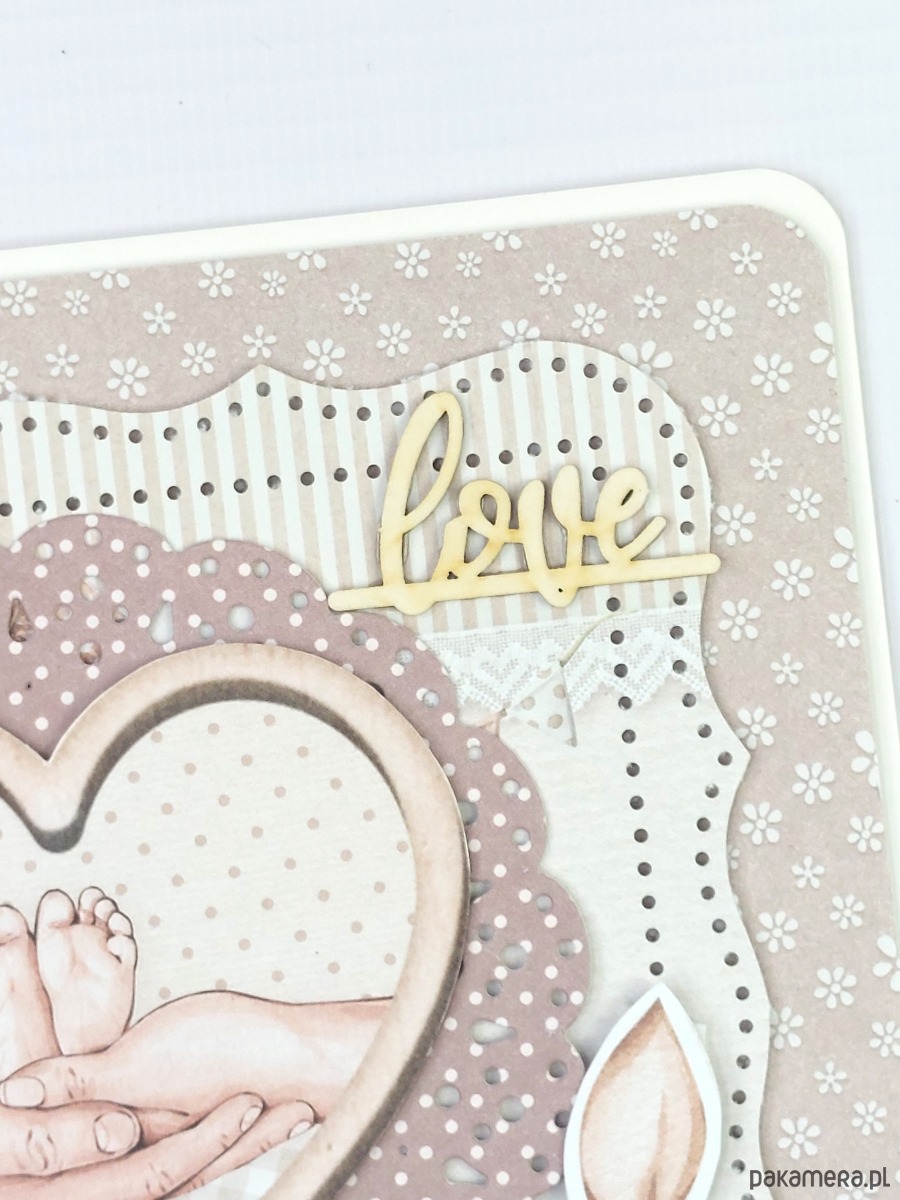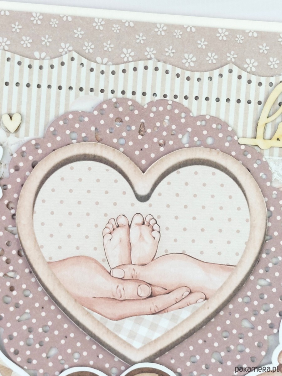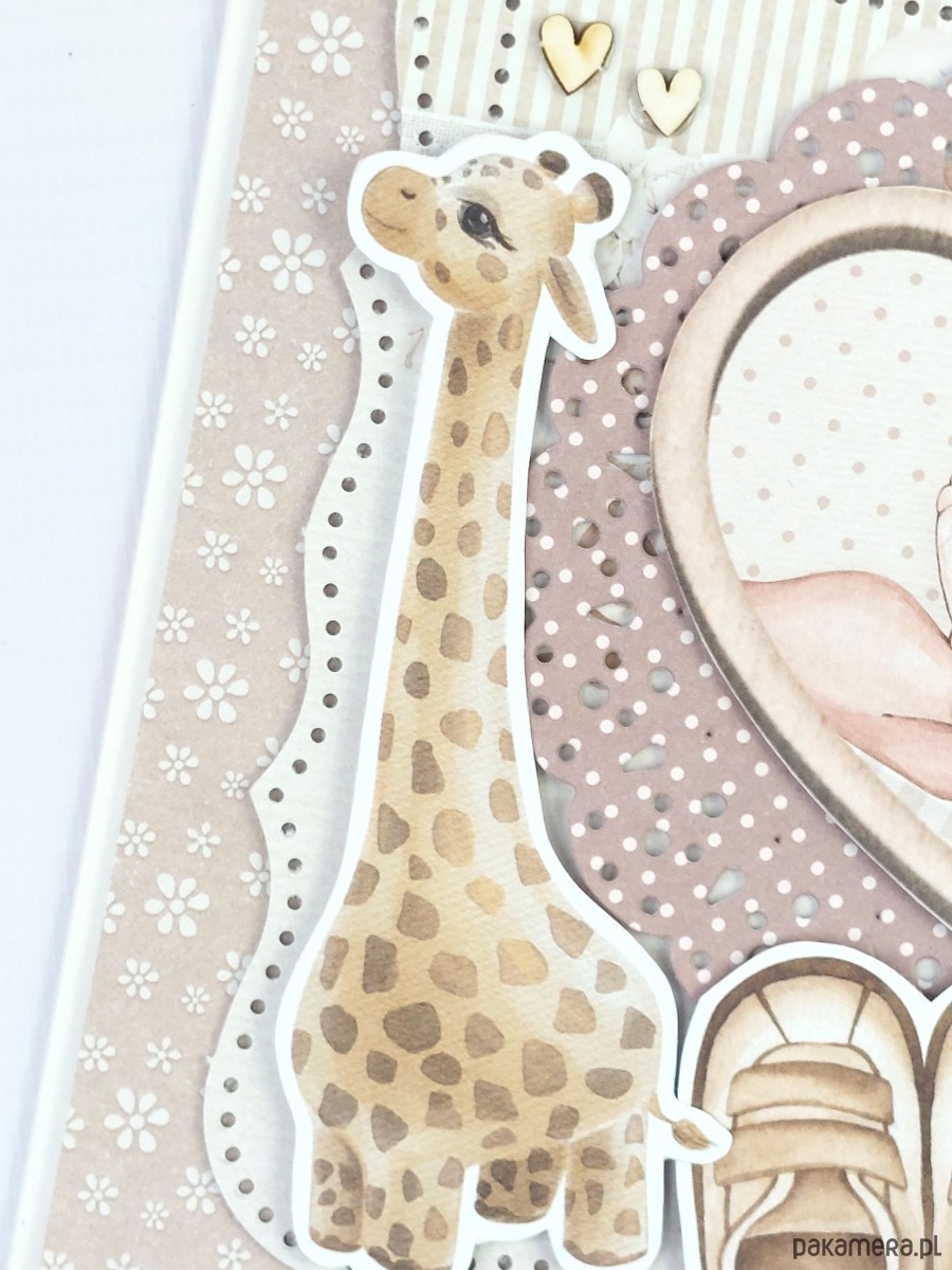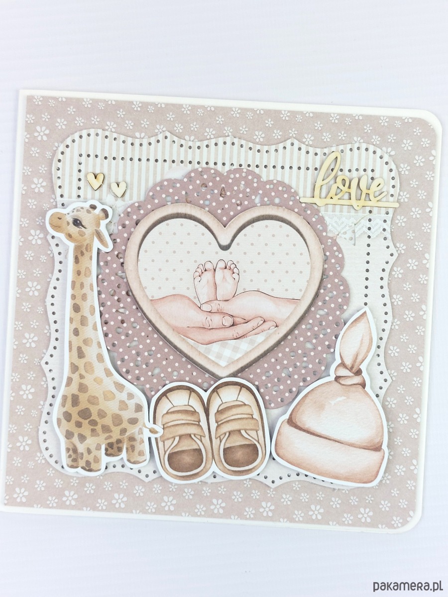 Kartka w odcieniach beżu brązowa, idealnie gdy nie znamy płci dziecka.