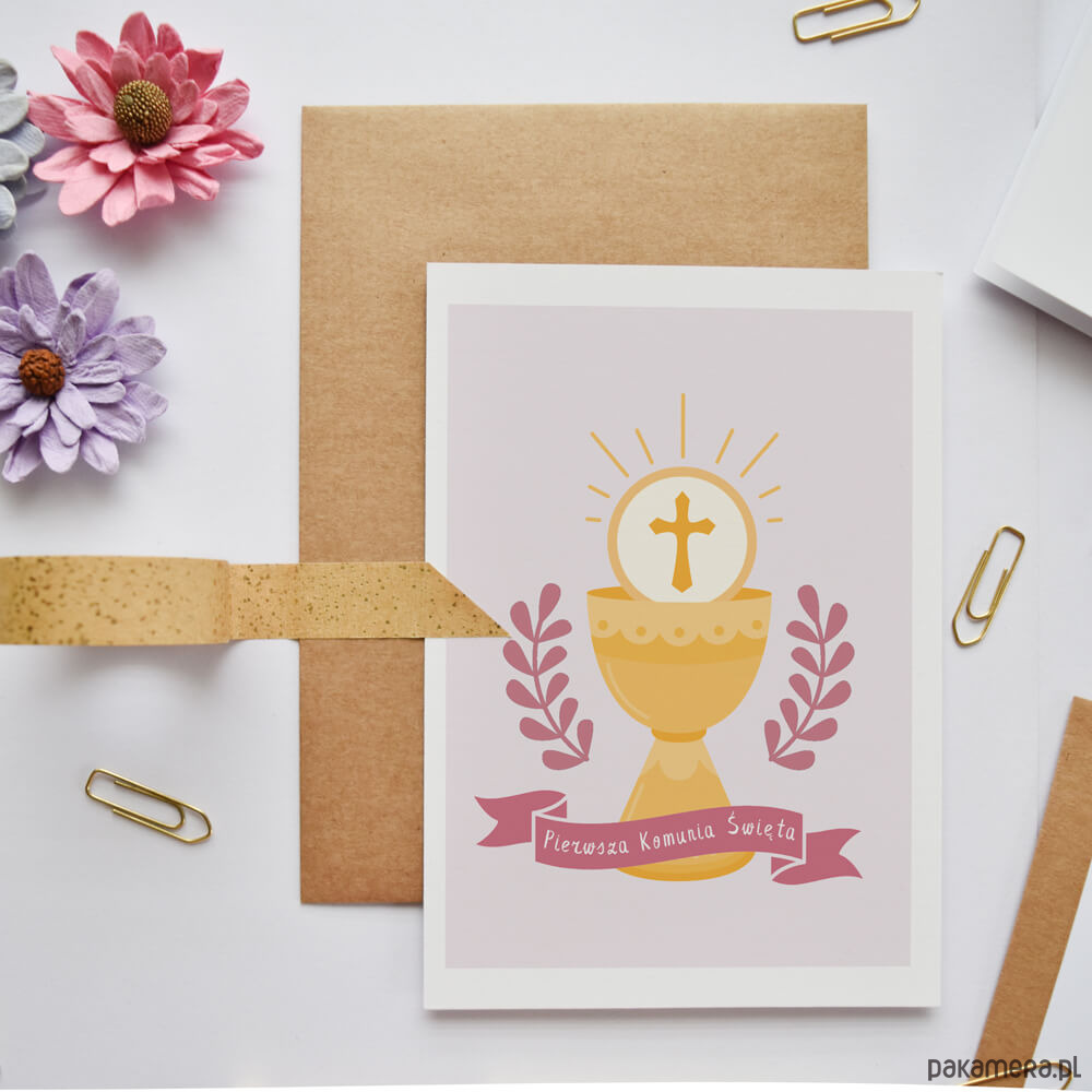 Kartka na Pierwszą Komunię Świętą dla dziewczynki