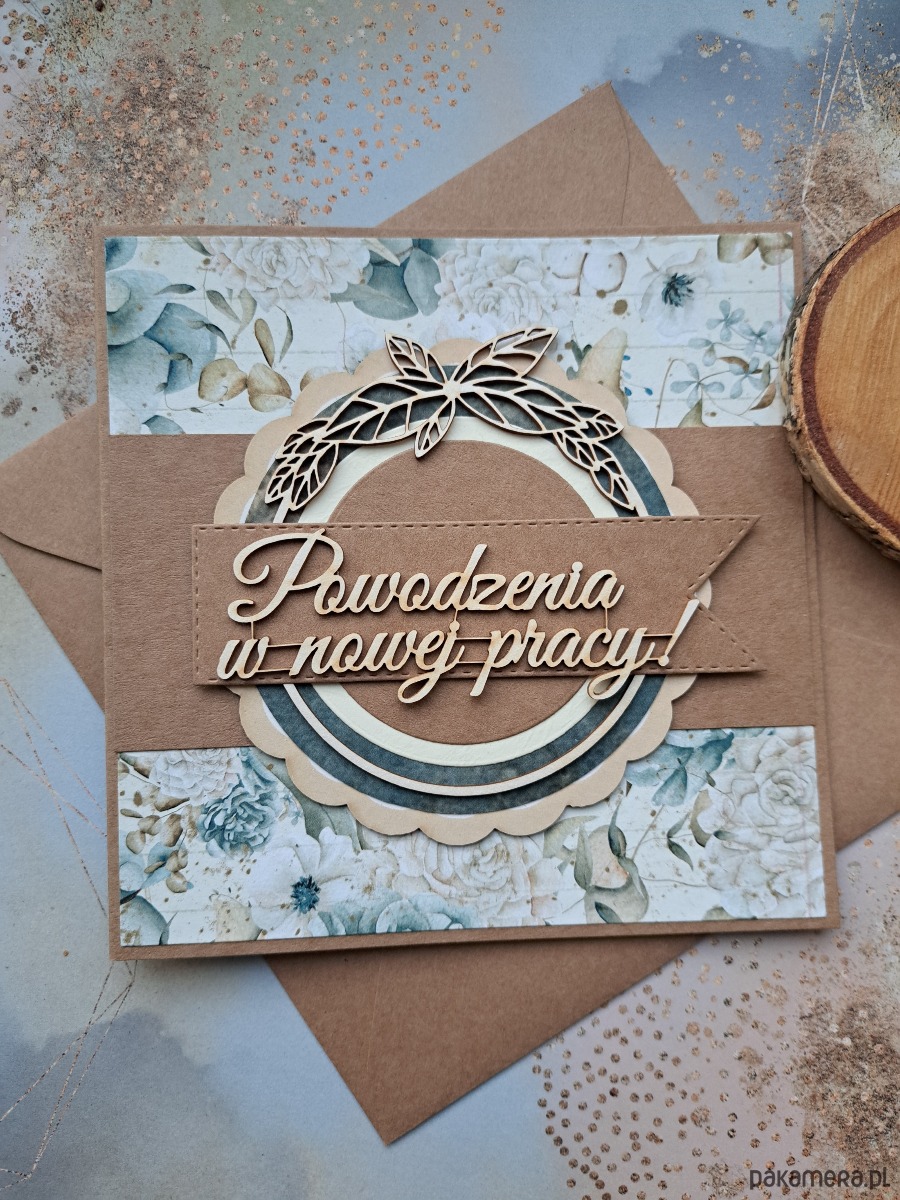 Kartka na odejście z pracy z napisem "Powodzenia w nowej pracy".