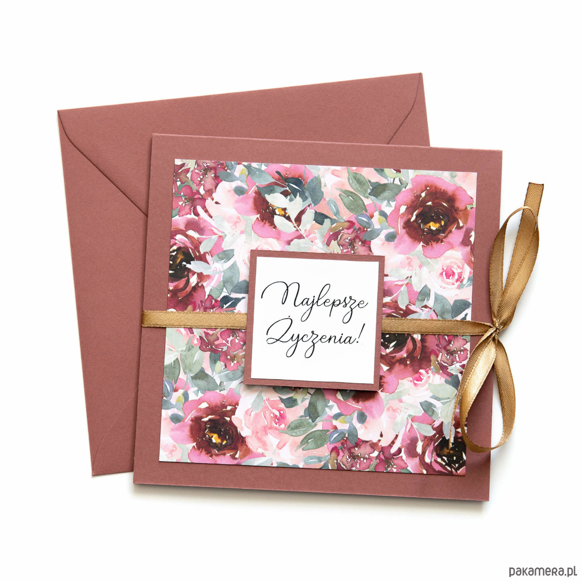 Kartka na ślub, urodziny, imieniny - kwiatowa różowa