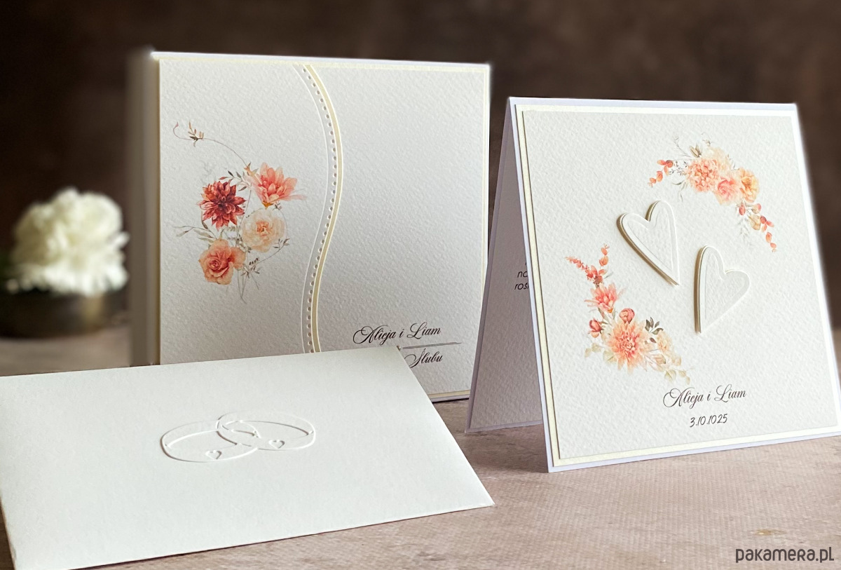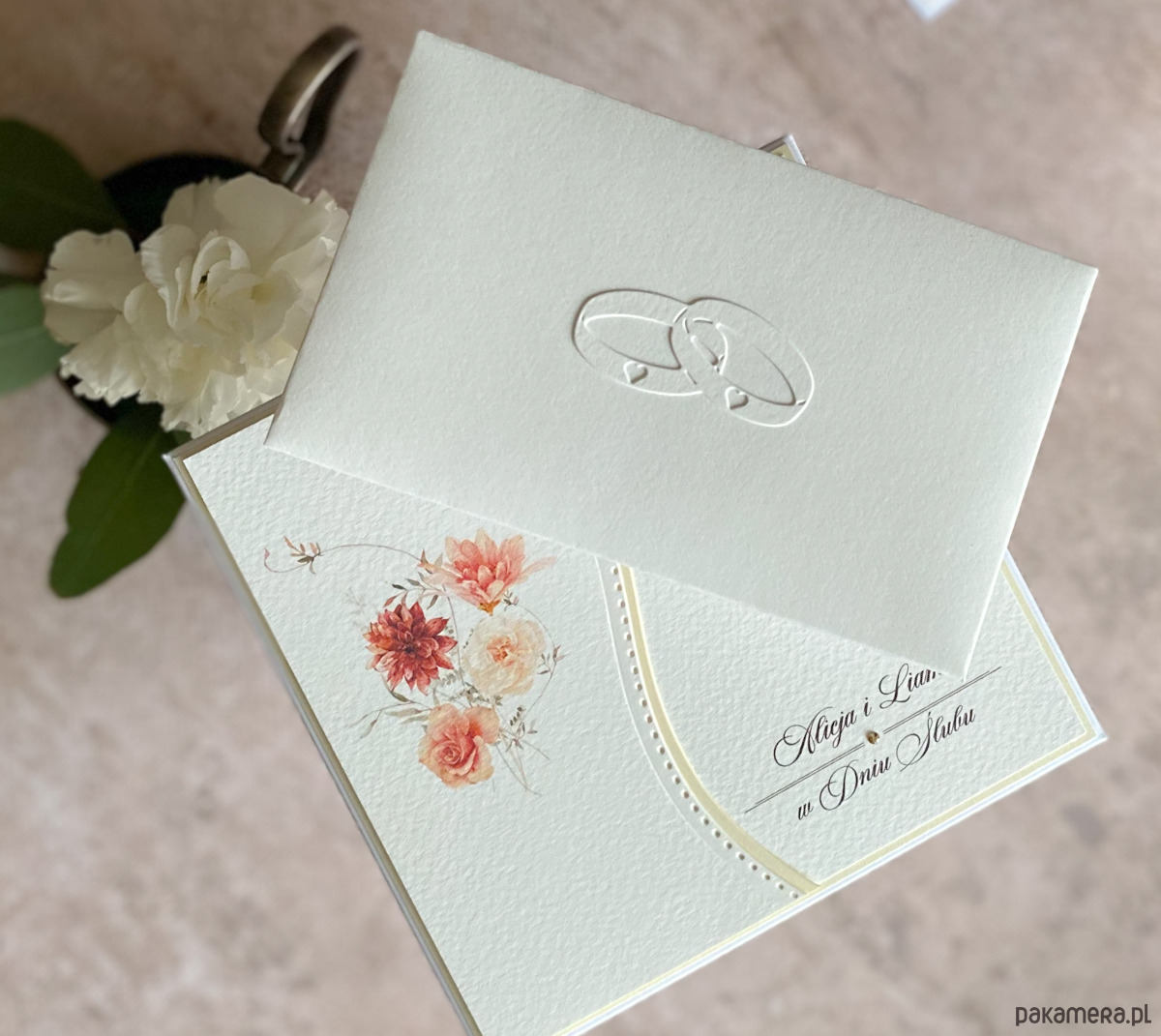 Linia Pastelle naszych projektów ślubnych to niezwykle subtelne połączenia autorskich projektów graficznych w delikatnych, pastelowych tonacjach. To zestawienie wyjątkowego włoskiego papieru w odcieniu delikatnej, śmietankowej bieli oraz wykończeń w odcieniu ecru. Ozdobionych ręcznie wyciętymi elementami z dodatkiem alabastrowych perełek lub delikatnych cyrkonii.