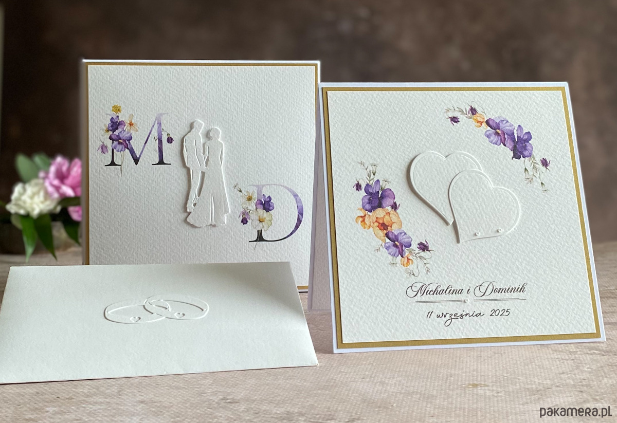 To nietuzinkowe zestawienie wyjątkowego włoskiego papieru w odcieniu delikatnej, śmietankowej bieli oraz wykończeń w odcieniu matowego złota. Ozdobionych ręcznie wyciętymi elementami z dodatkiem alabastrowych perełek lub delikatnych cyrkonii.