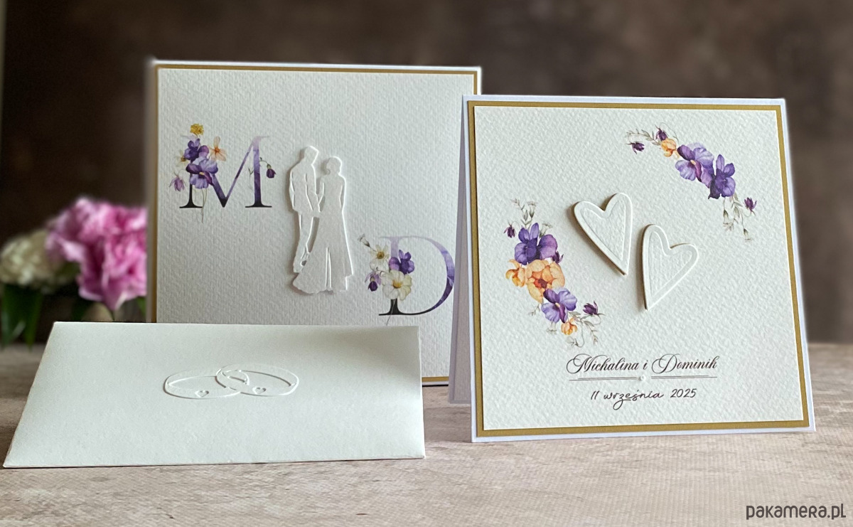 To nietuzinkowe zestawienie wyjątkowego włoskiego papieru w odcieniu delikatnej, śmietankowej bieli oraz wykończeń w odcieniu matowego złota. Ozdobionych ręcznie wyciętymi elementami z dodatkiem alabastrowych perełek lub delikatnych cyrkonii.