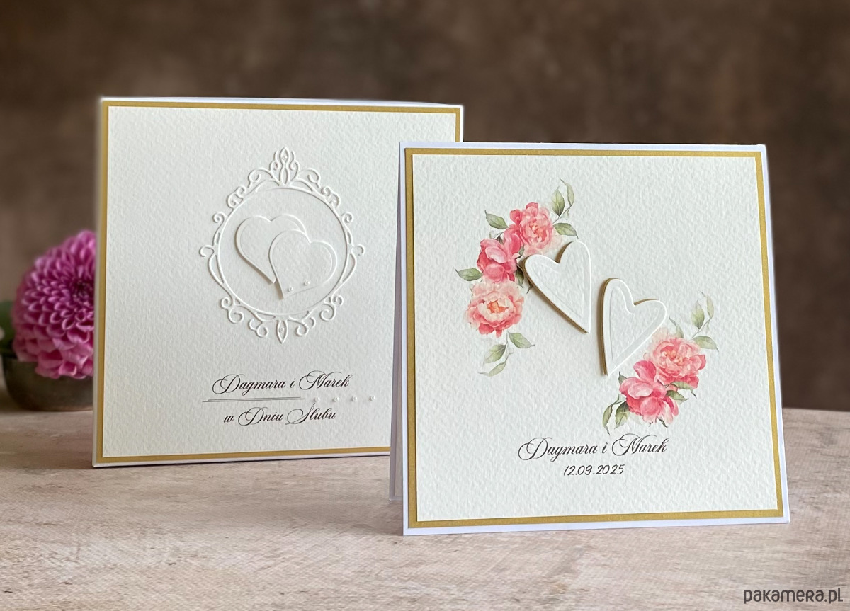 To zestawienie wyjątkowego włoskiego papieru w odcieniu delikatnej, śmietankowej bieli oraz wykończeń w odcieniu matowego złota. Ozdobionych ręcznie wyciętymi elementami z dodatkiem alabastrowych perełek lub delikatnych cyrkonii.