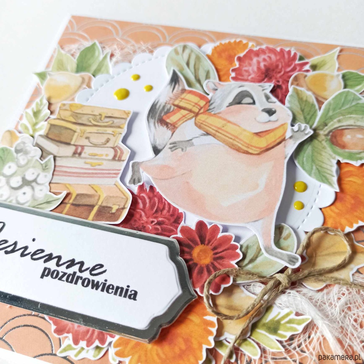 Ręcznie robiona, jesienna kartka okolicznościowa z motywem szopa