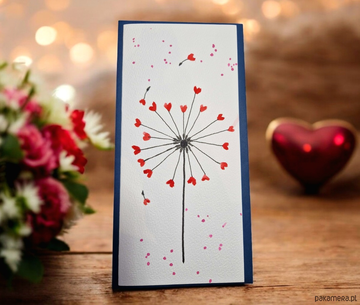 Piękna, delikatna kartka okolicznościowa, dmuchawce, latawce love...