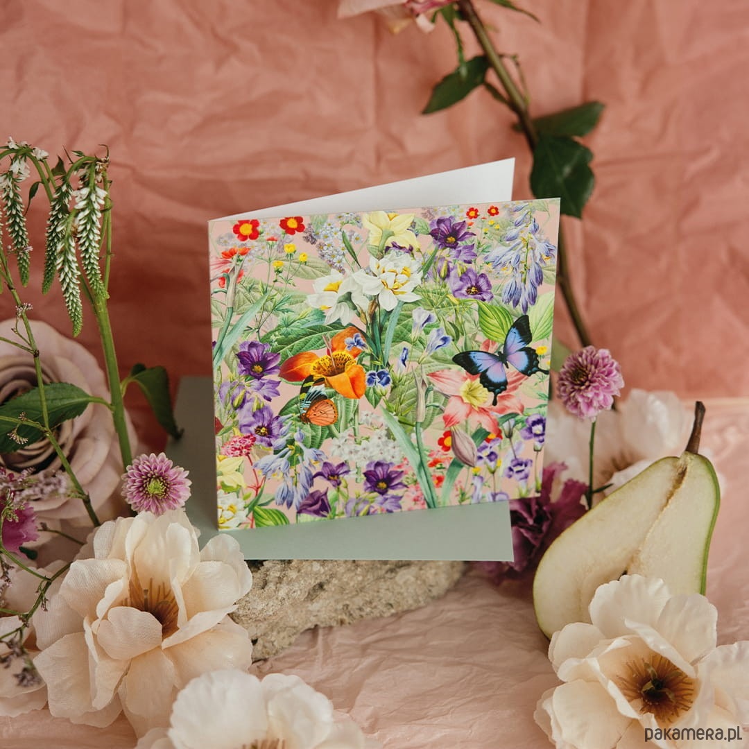 Kartka okolicznościowa z delikatnym, botanicznym motywem, która podkreśli wyjątkowość każdej okazji. Kwadratowy, składany format 15 × 15 cm prezentuje się elegancko i świetnie dopełnia prezent. Wnętrze kartki czyste - gotowe na Twoje osobiste życzenia, ciepłe słowa i emocje, które chcesz przekazać.