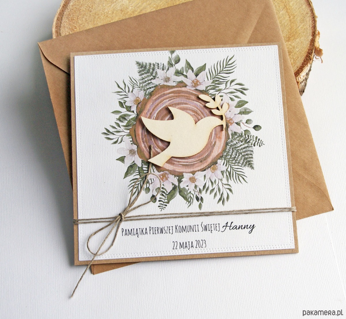 Kartka, PERSONALIZACJA : I Komunia Święta : drewno