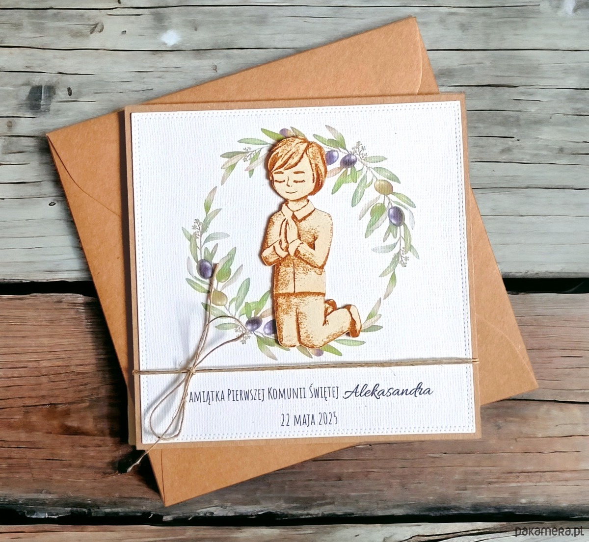 Kartka, PERSONALIZACJA : I Komunia Święta : oliwki: chłopiec 2.