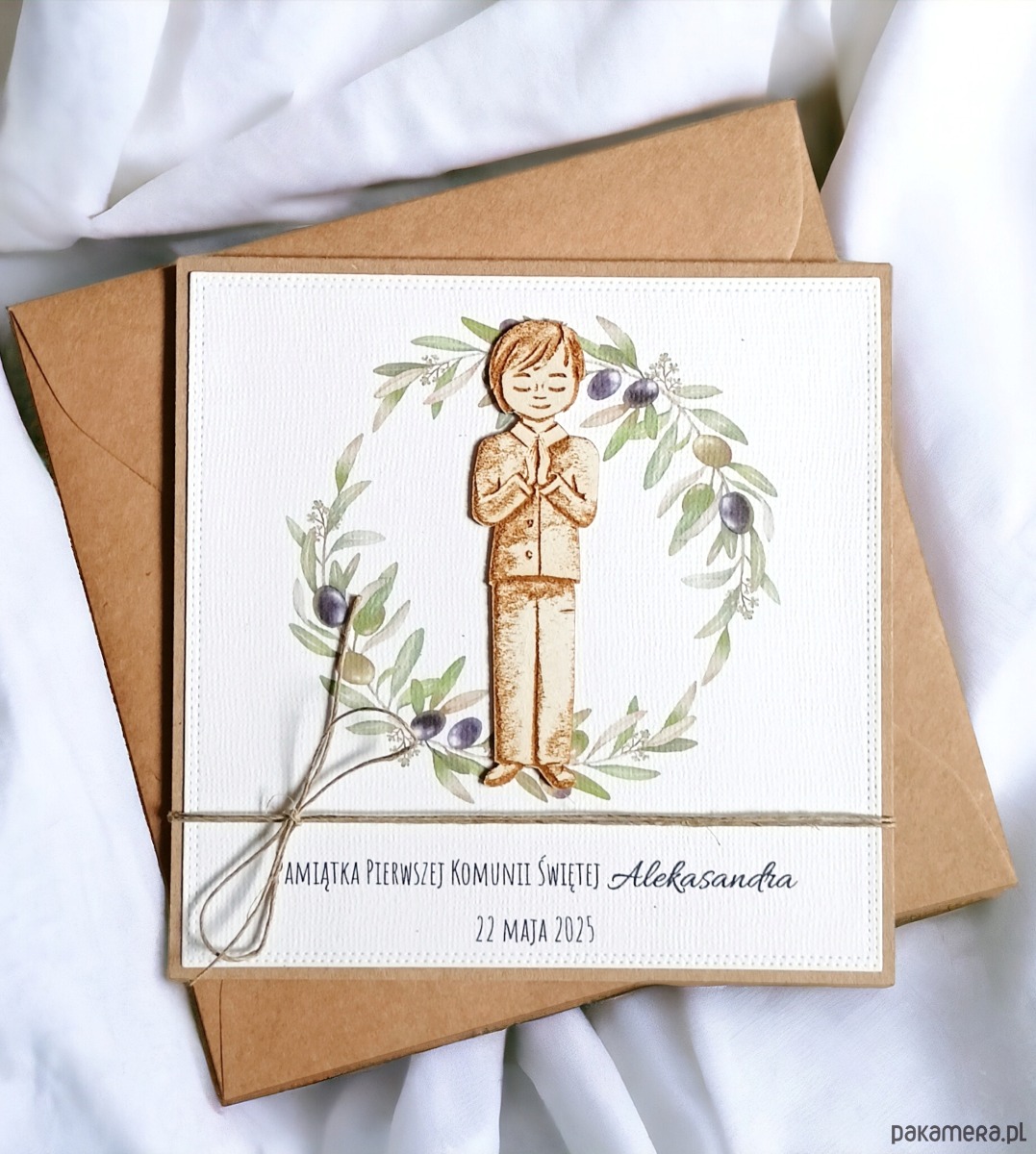 Kartka, PERSONALIZACJA : I Komunia Święta : oliwki:: chłopiec
