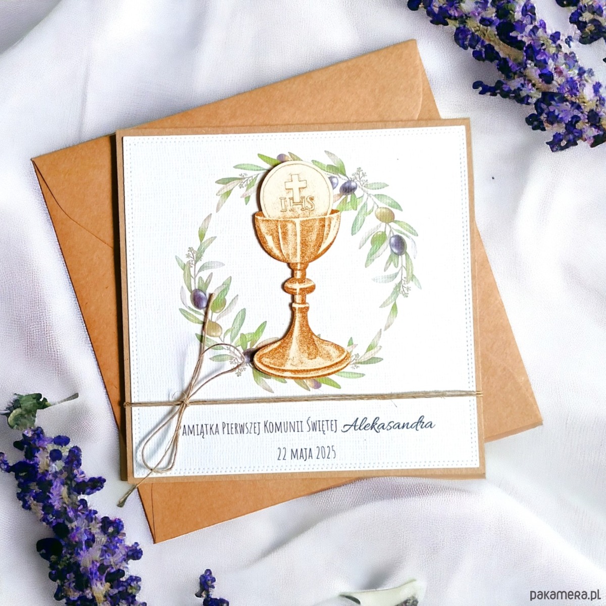 Kartka, PERSONALIZACJA : I Komunia Święta :: oliwki: kielich.