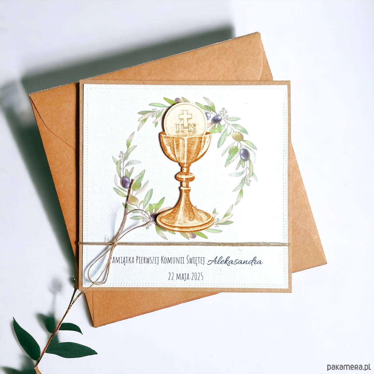 Kartka, PERSONALIZACJA : I Komunia Święta : oliwki: kielich