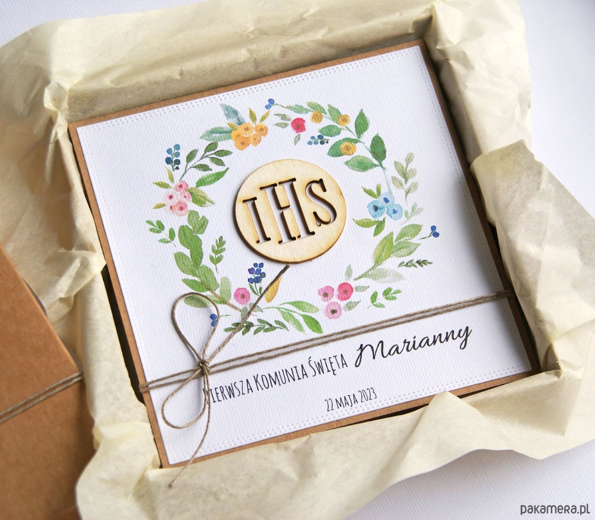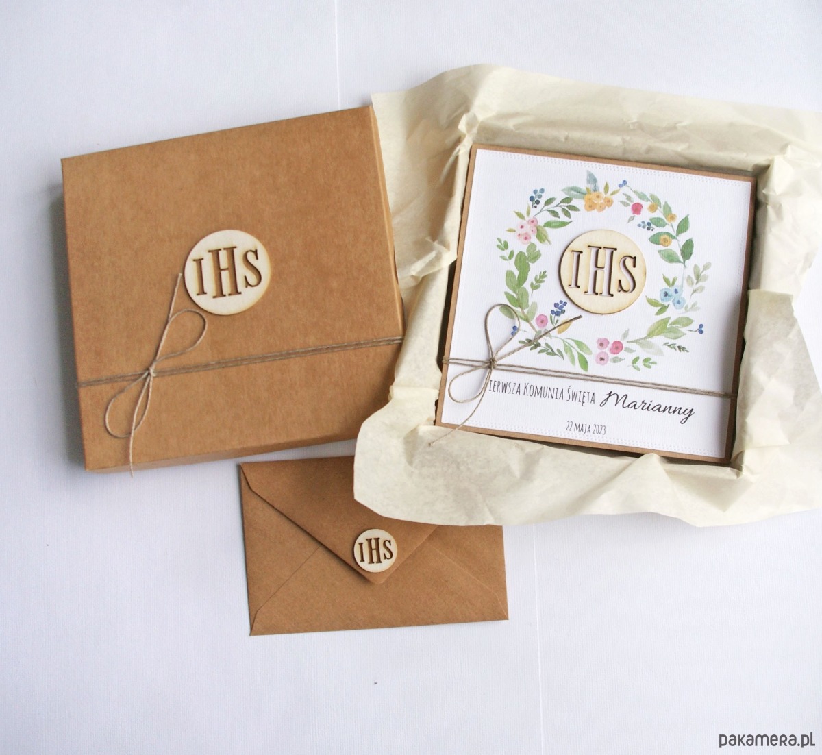 Kartka, personalizacja, pudełko, koperta : kolorowy wianuszek IHS