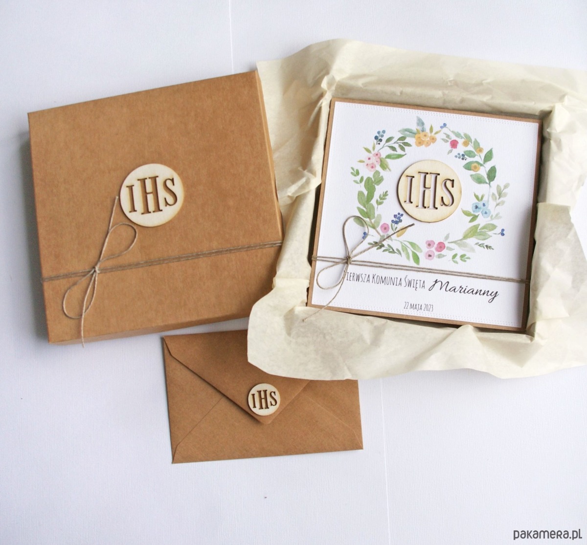 Kartka, personalizacja, pudełko, koperta : wianuszek
