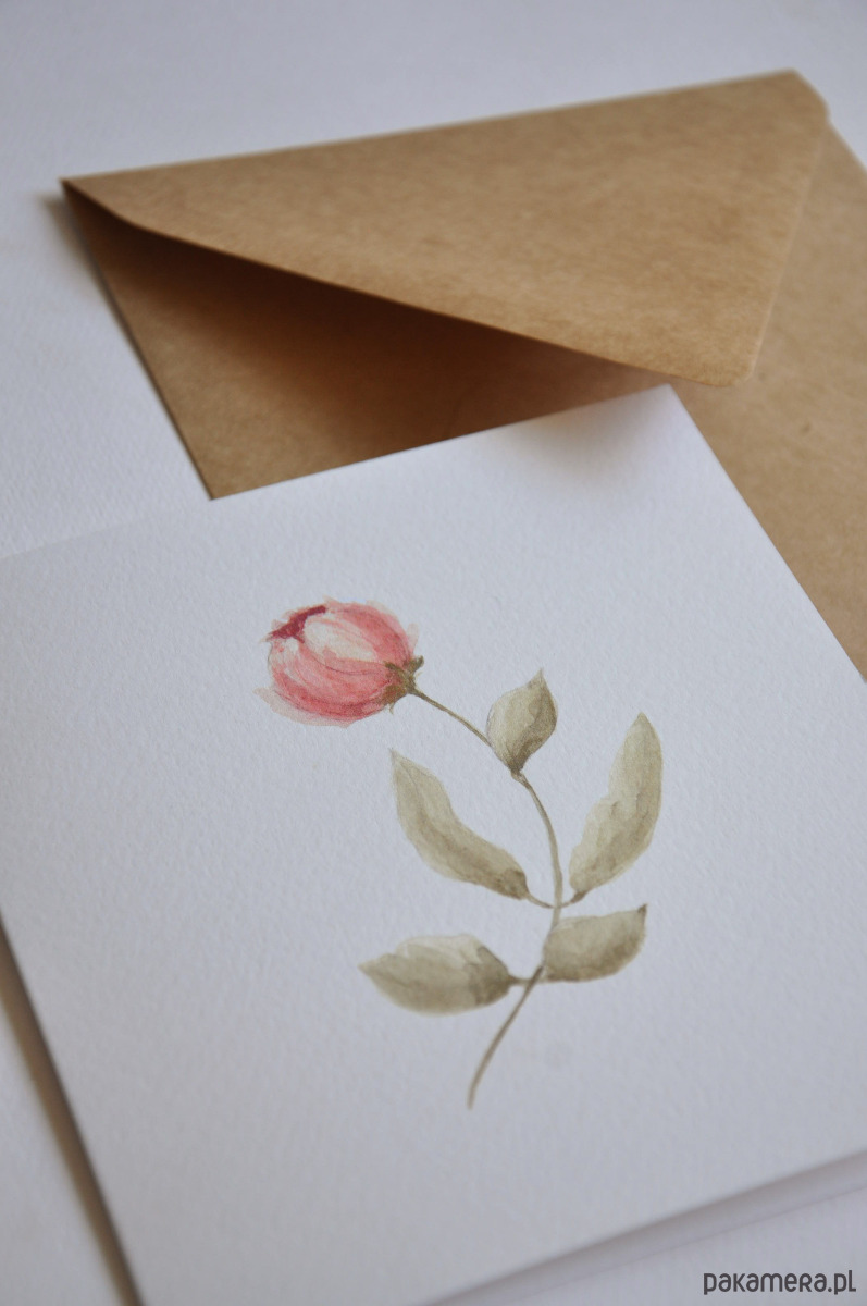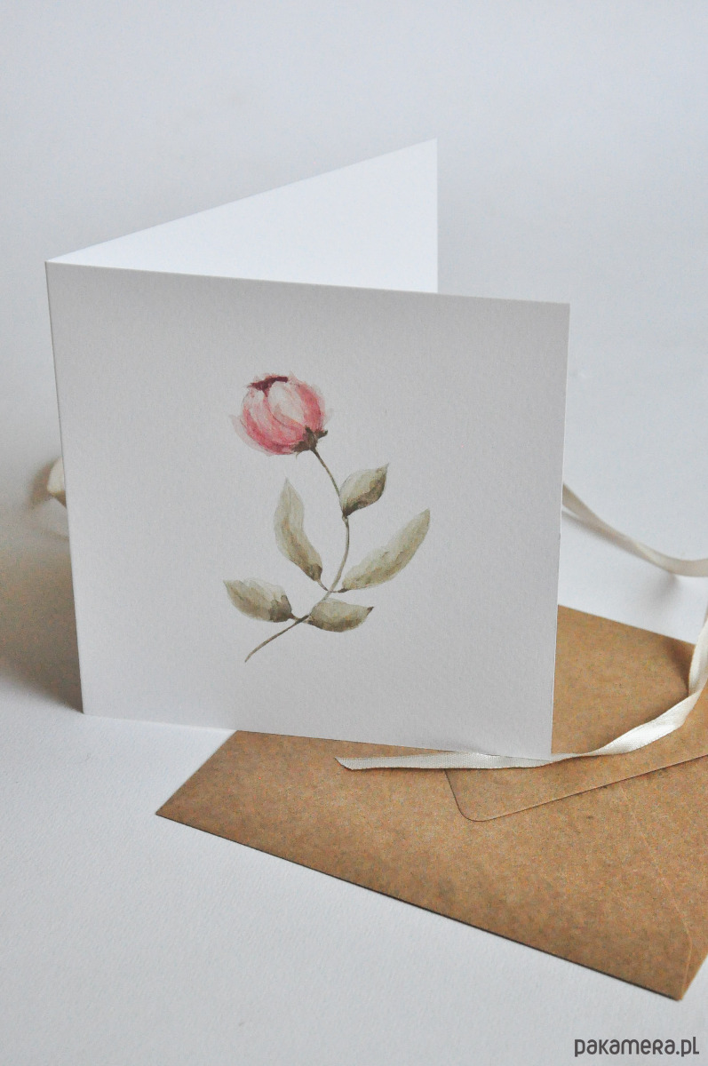 Kartka z autorskim wzorem Piwoni, wydruk na wysokiej jakości papierze z delikatną faktura ala papier akwarelowy, w zestawie z kopertą eko