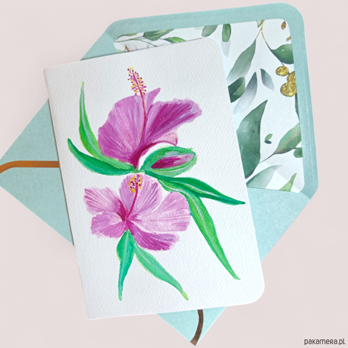 Piękna kartka malowana ręcznie akwarelami, oryginał.