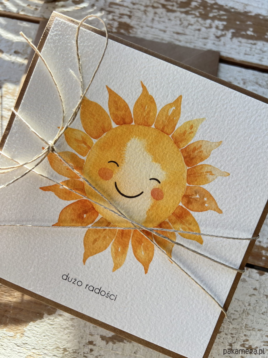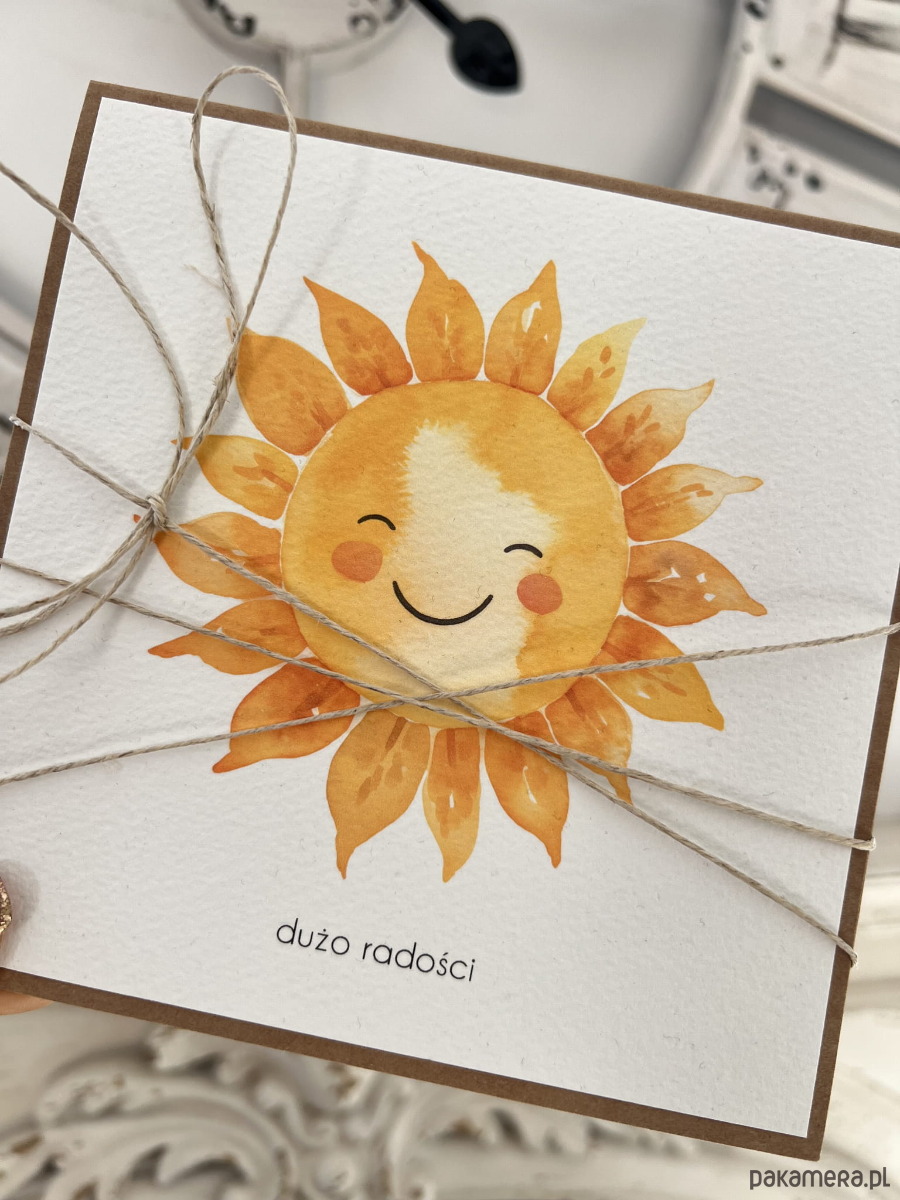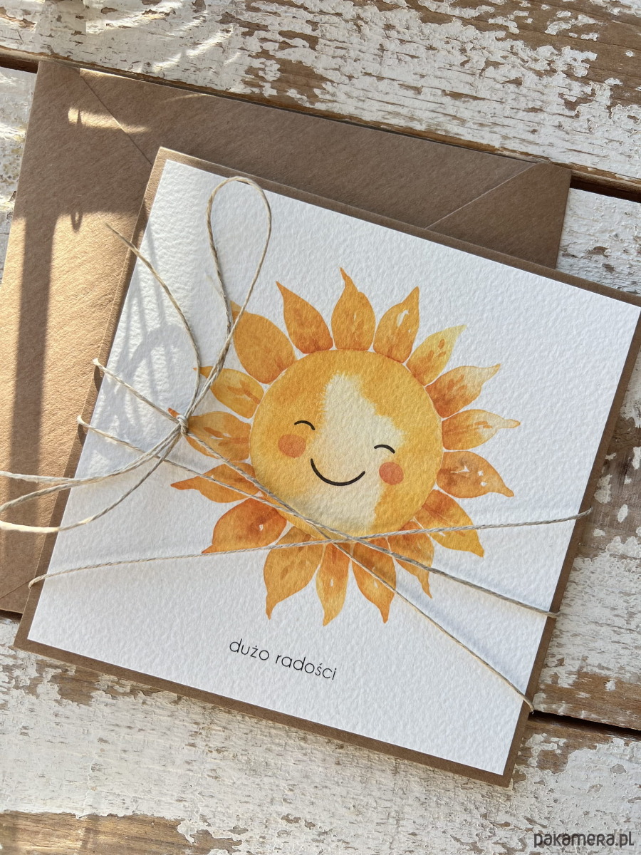 Kartka ręcznie robiona słońce - dużo radości - urodzinowa, imieninowa, motywacyjna