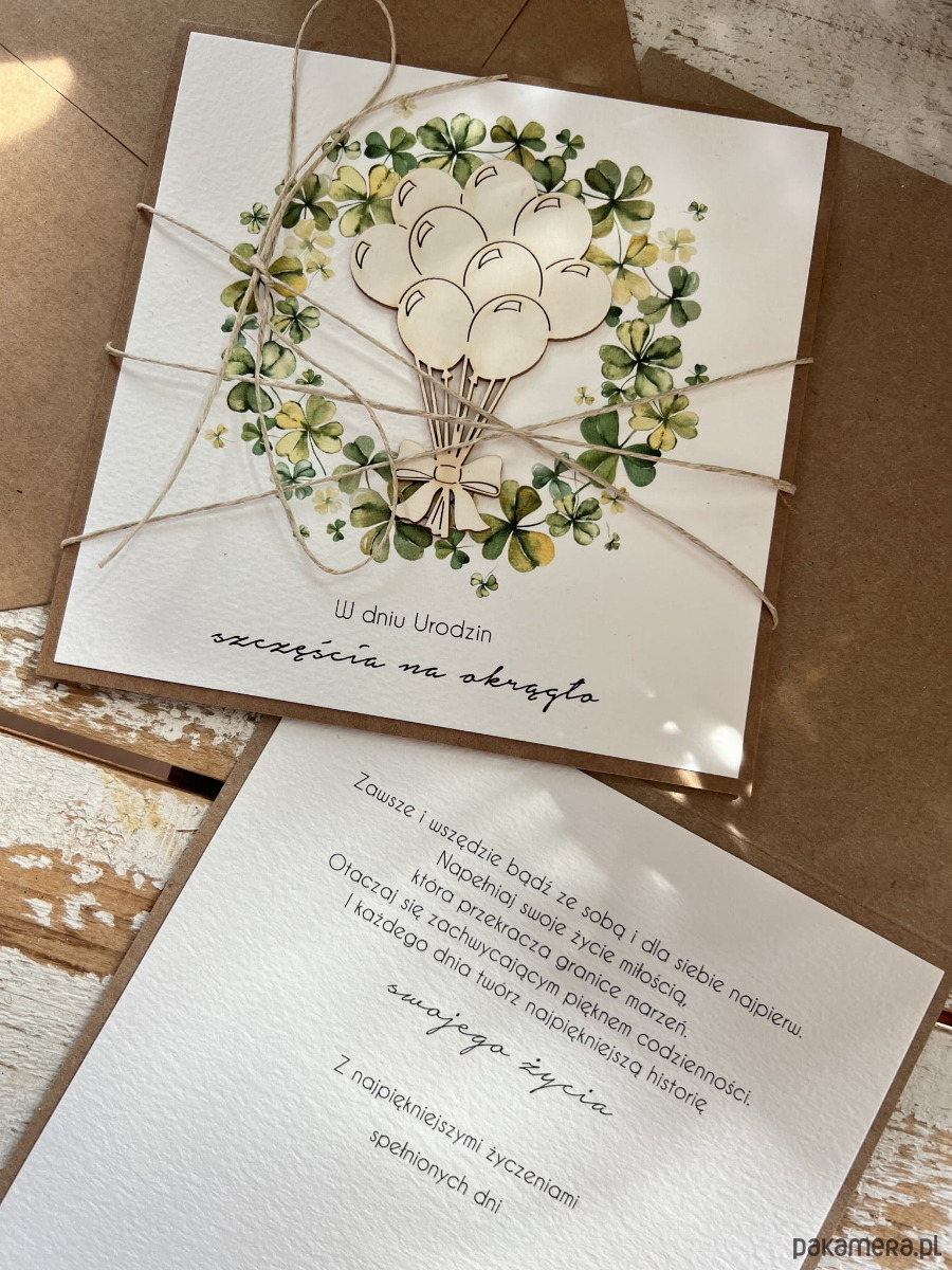 Kartka ręcznie robiona - urodzinowa w dniu urodzin czterolistna koniczynka