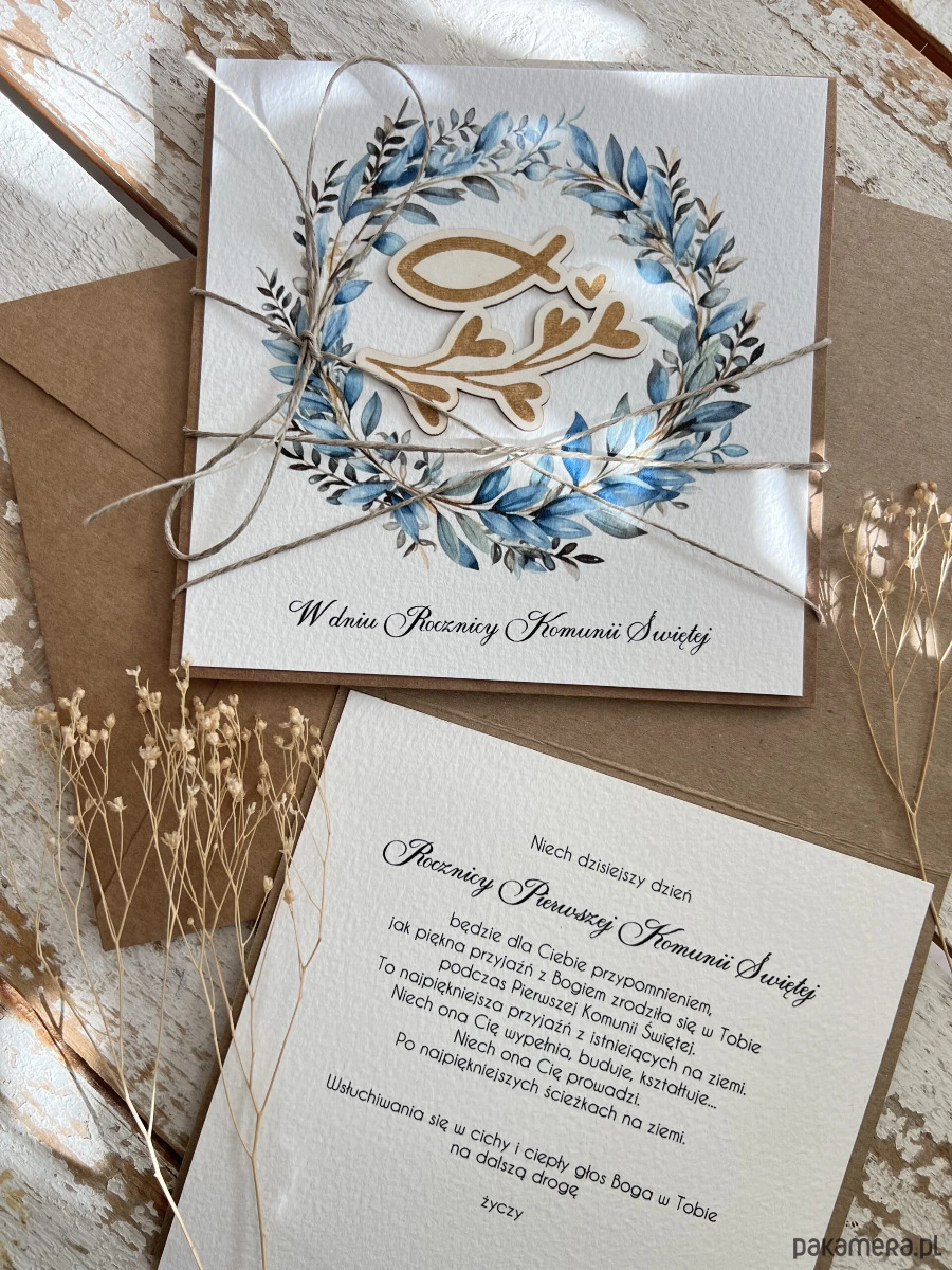 Kartka ręcznie robiona z okazji rocznicy komunii świętej - odnowienie przyrze