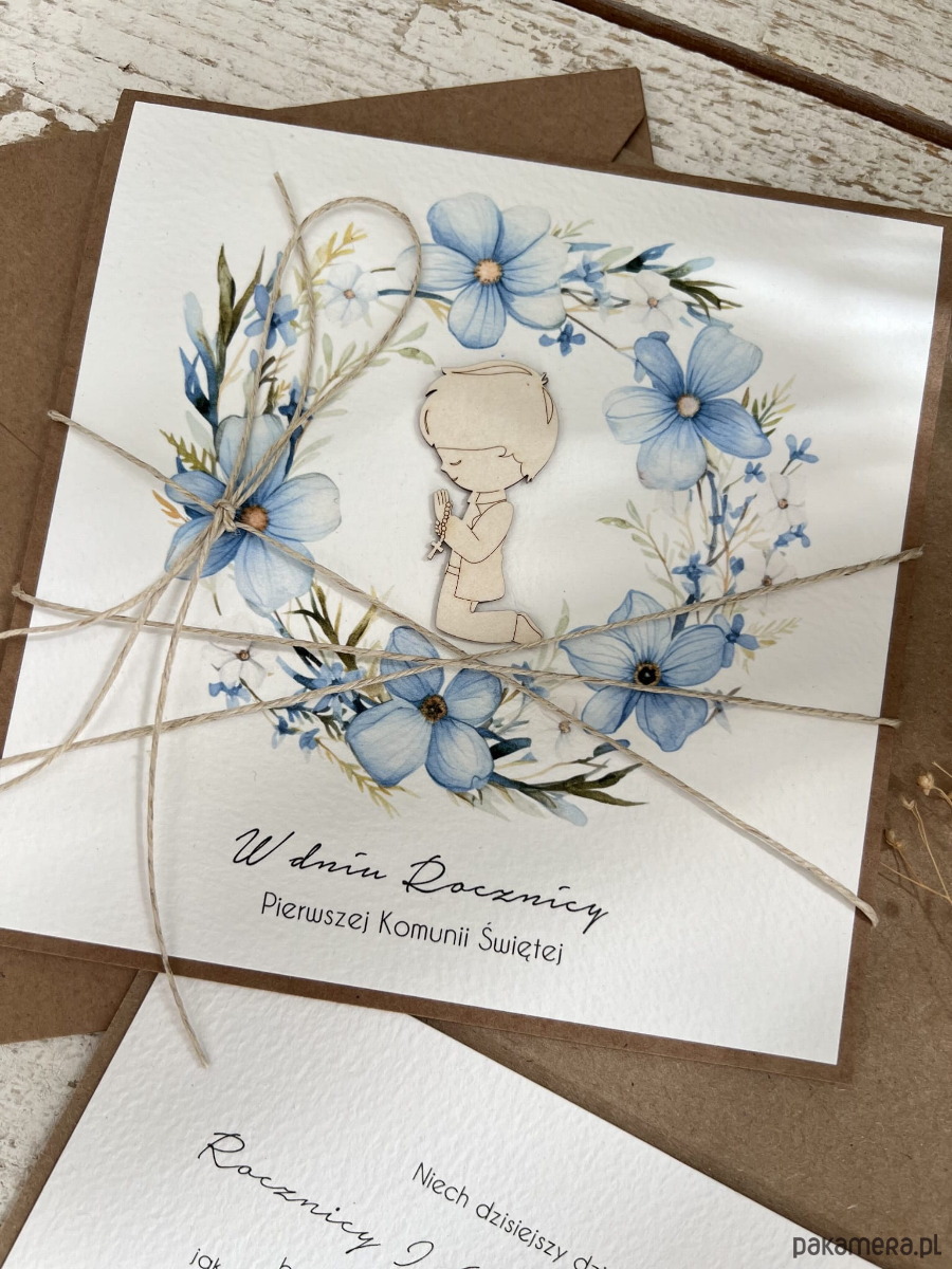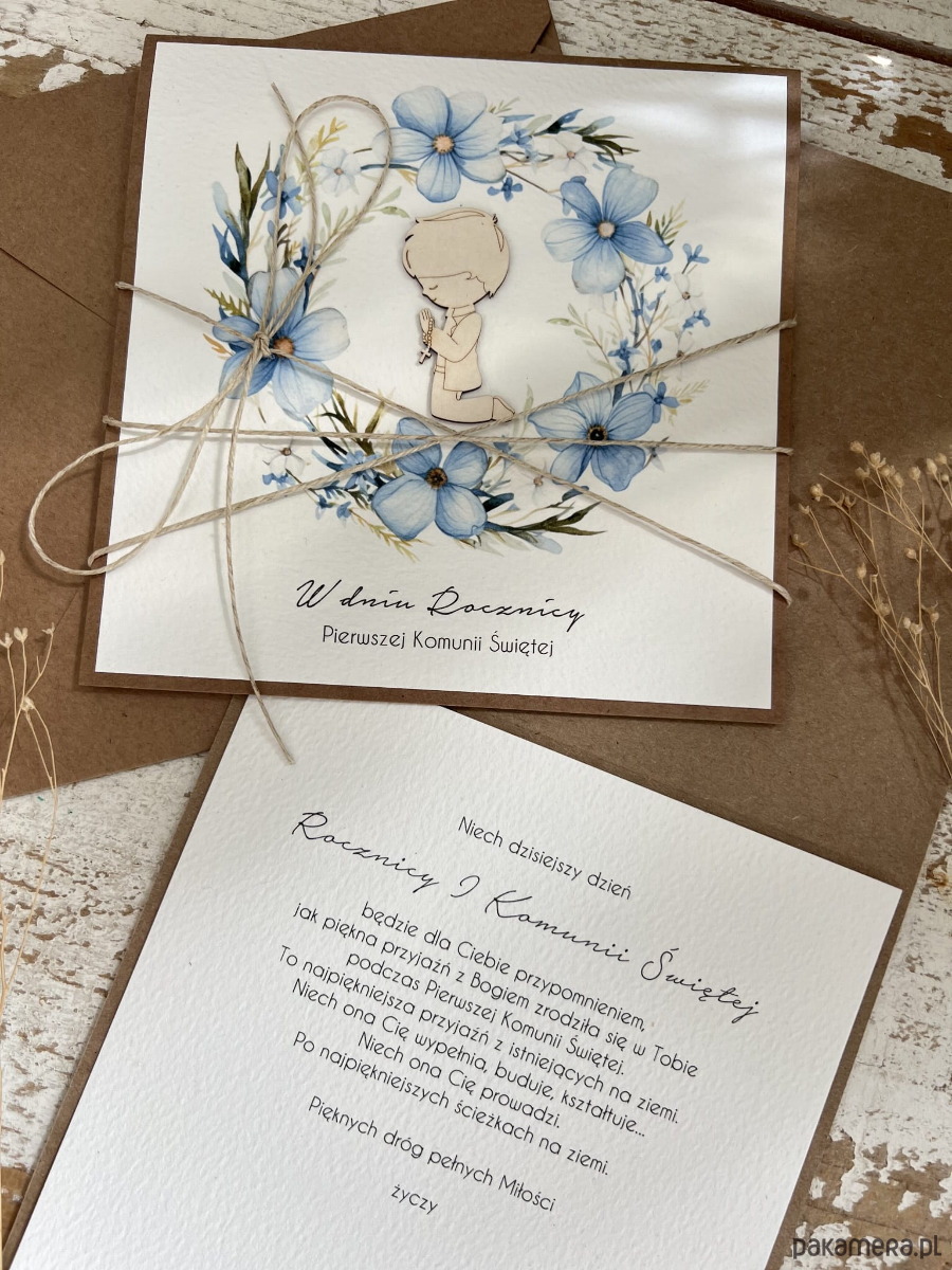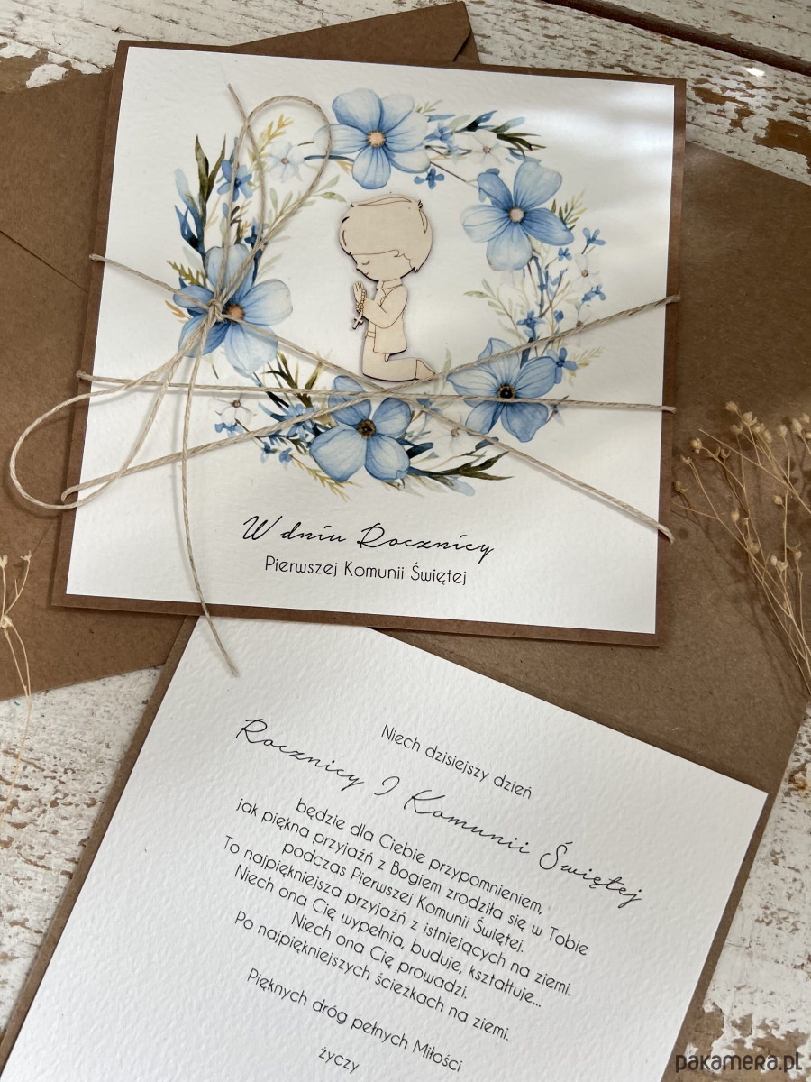 Kartka ręcznie robiona z okazji rocznicy komunii świętej - odnowienie przyrzeczeń, rocznica komunii - prezent dla chłopca