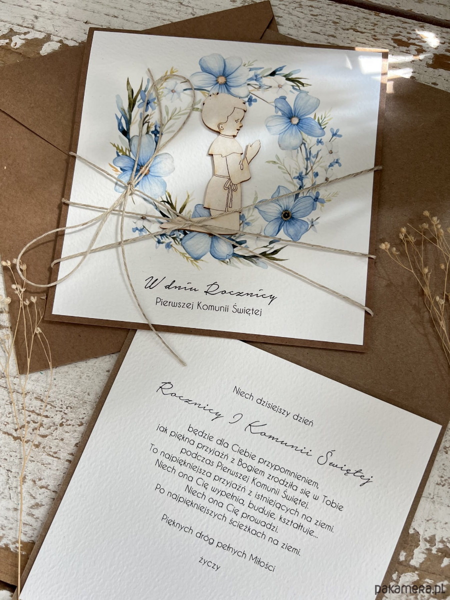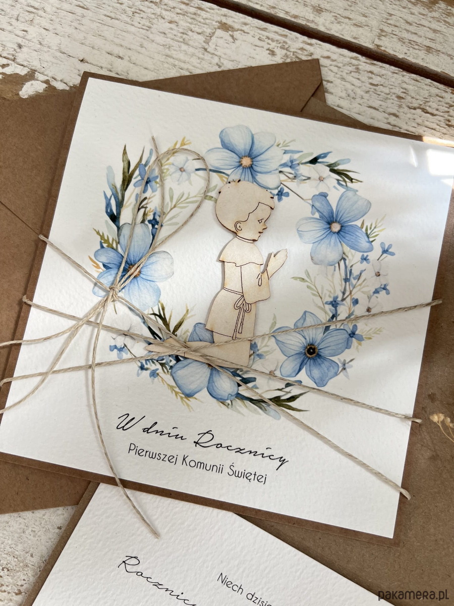 Kartka ręcznie robiona z okazji rocznicy komunii świętej - odnowienie przyrzeczeń, rocznica komunii - prezent dla chłopca