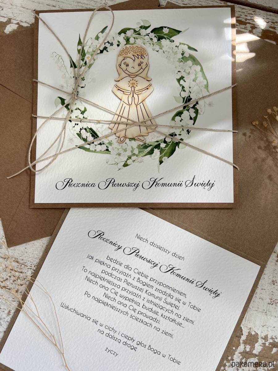 Kartka ręcznie robiona z okazji rocznicy komunii świętej - odnowienie przyrzeczeń, rocznica komunii - prezent dla dziewczynki