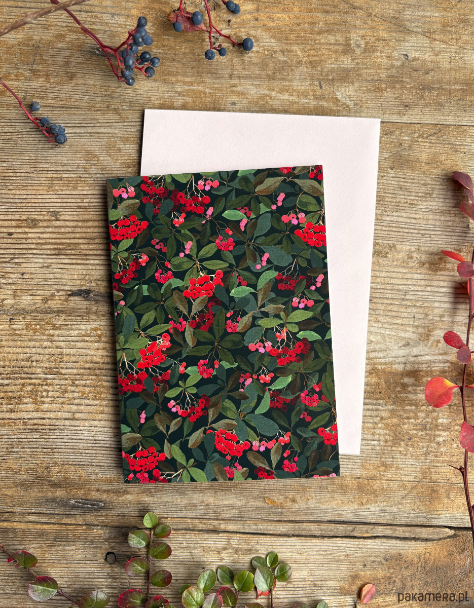 Kartka-Red Berries- Grafika- Ilustracja- Kartka okolicznościowa
