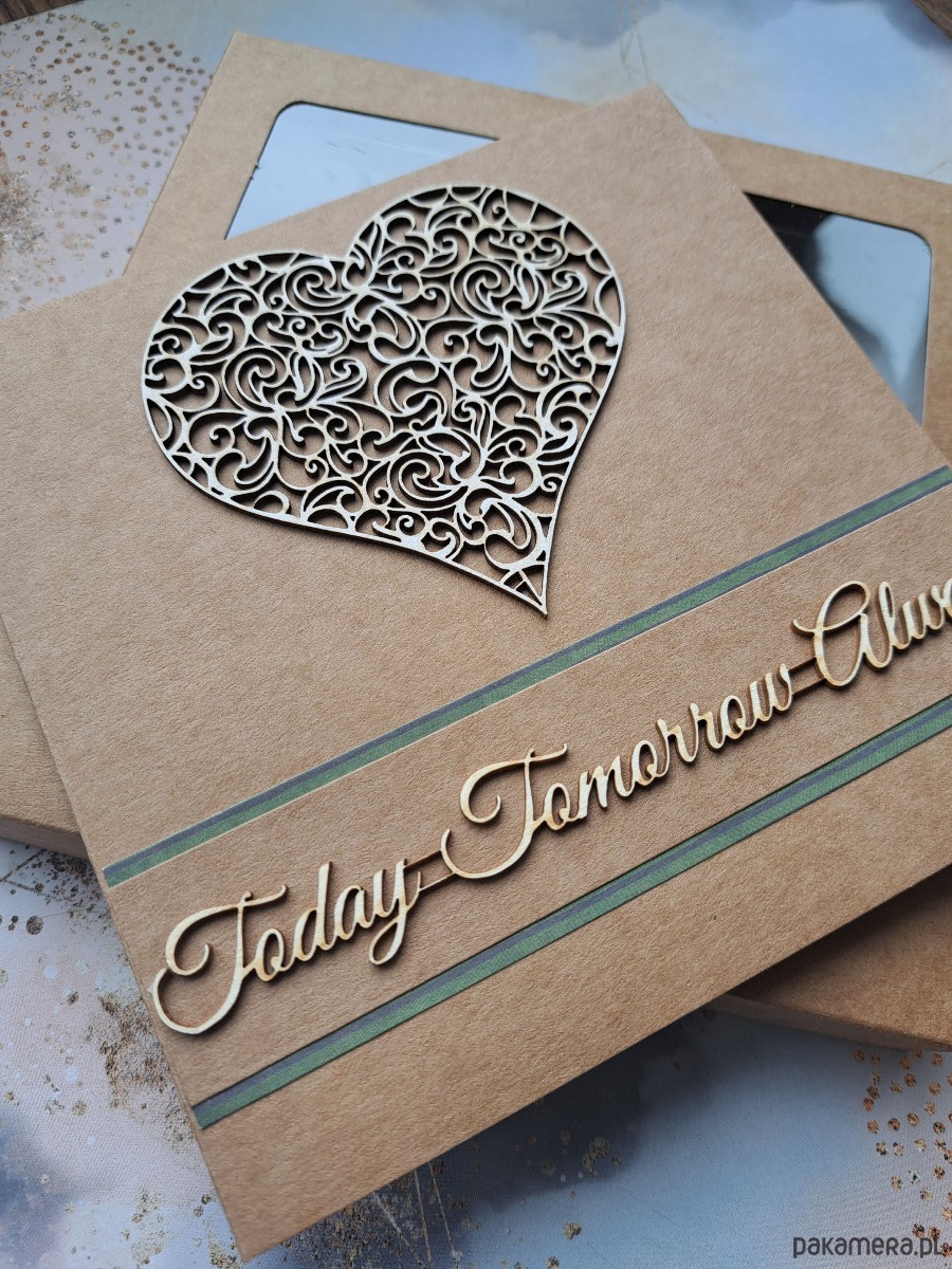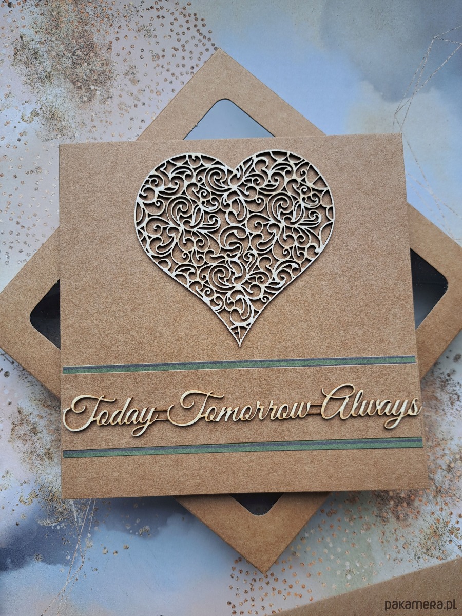 - kartka zdobiona ażurowym, tekturkowym sercem i napisem po angielsku